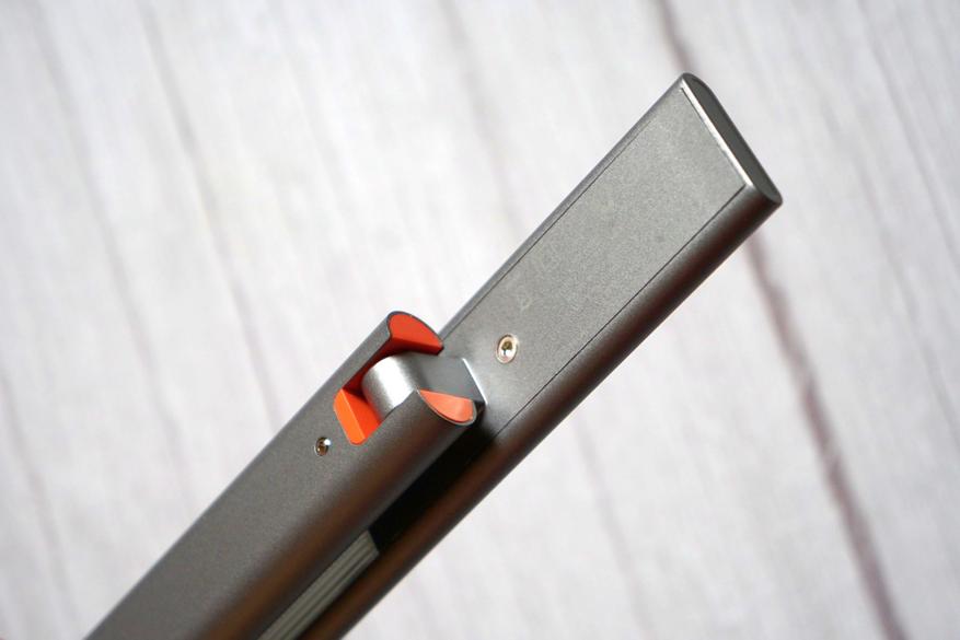 Узел соединения стойки и осветительного блока имеет оранжевый цвет, придающий еще более интересный вид внешности лампы: