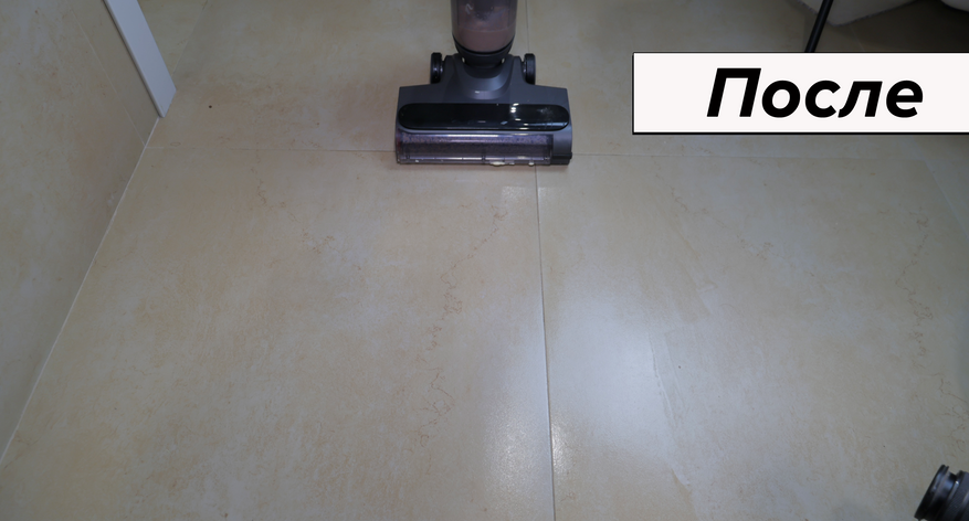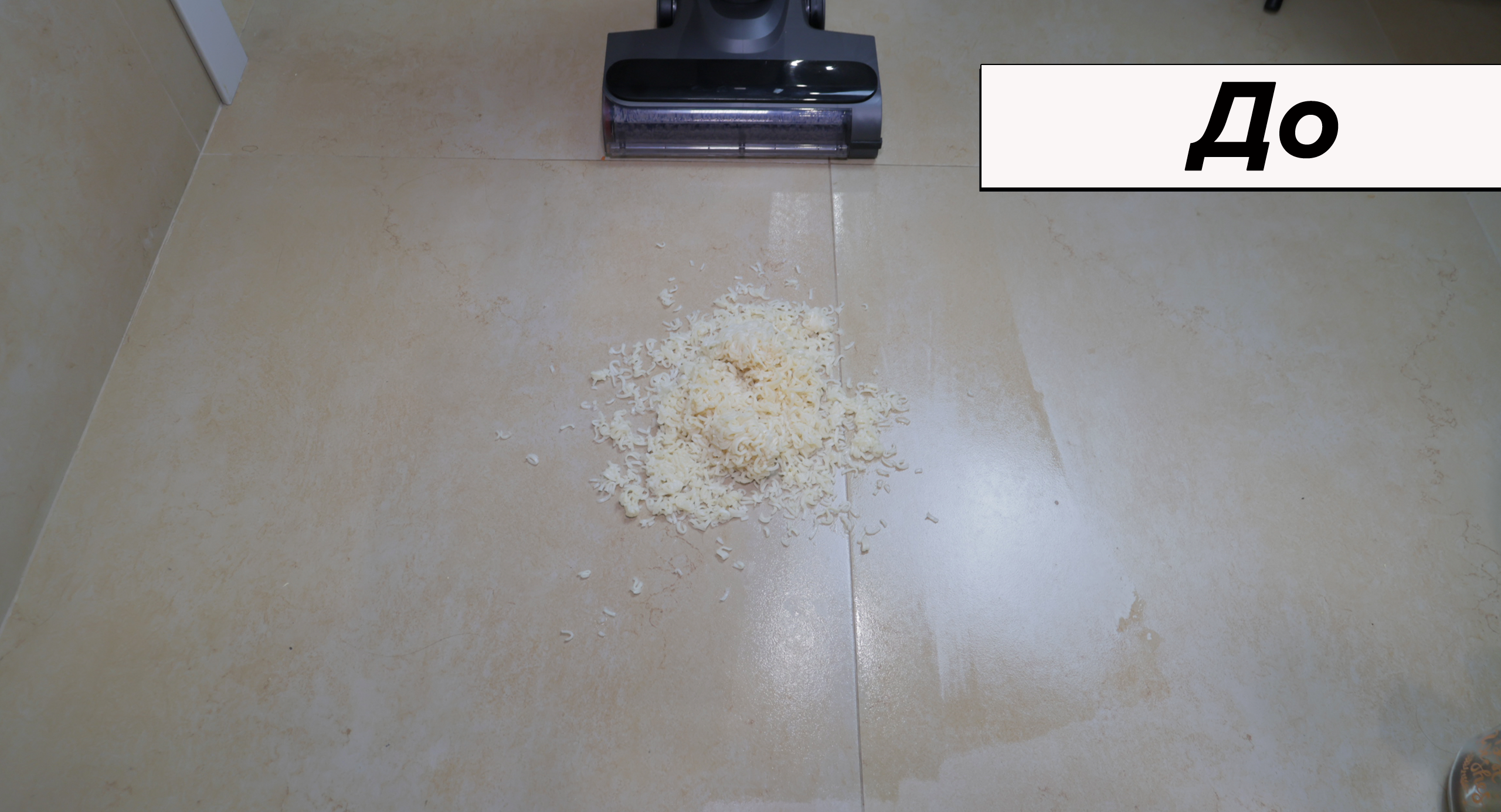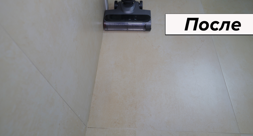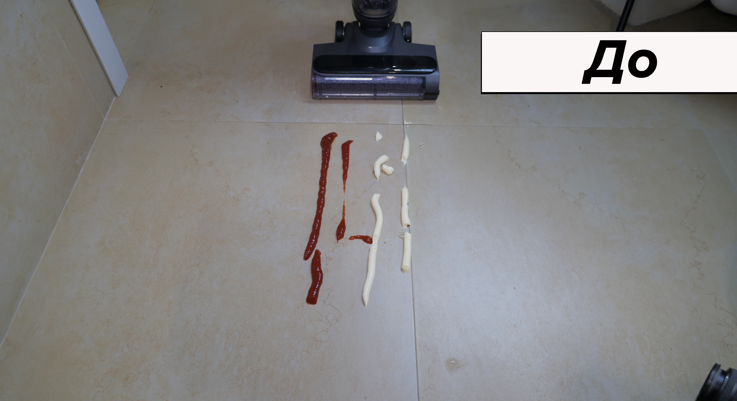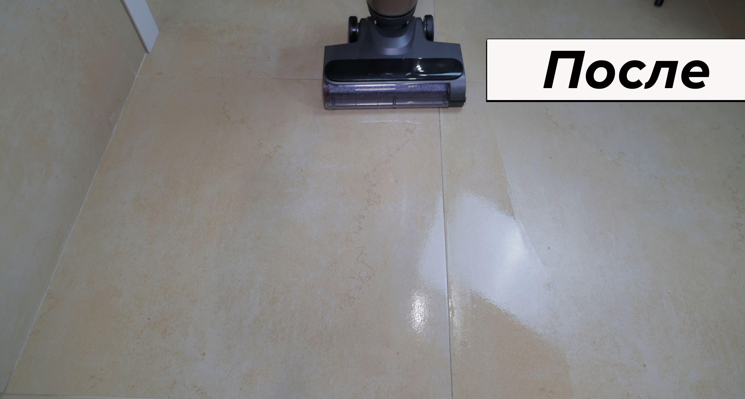 Разлитые жидкости: собирает адекватно, включая участки у плинтуса, но пол остаётся влажным — это важно учитывать.
