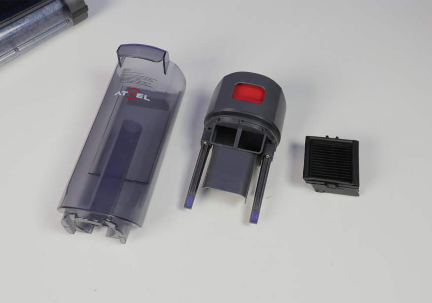 У Atvel F16 FastClean обновленный продолговатый корпус в стиле «подводная лодка». Резервуар для чистой воды (550 мл) перенесли с верхней точки моторного блока вниз, и теперь корпус стал более глубоким. Под кровать он явно не пролезет, но это не входит в список недостатков — более тонкие моющие пылесосы тоже не помощники в таких делах, потому что в горизонтальном положении корпуса (какой бы он толщины не был) вода попадает в мотор.