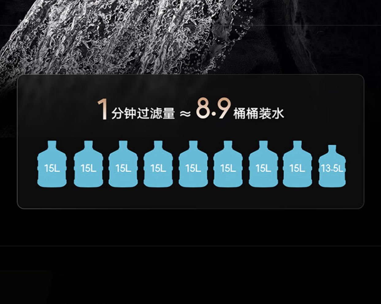 Пропускная способность фильтра достигает 8 кубов в час, что, по описанию, эквивалентно 8.9 15-литровым бутылям воды за минуту. Это обеспечивает его одновременное использование в кухне, ванной и других помещениях.