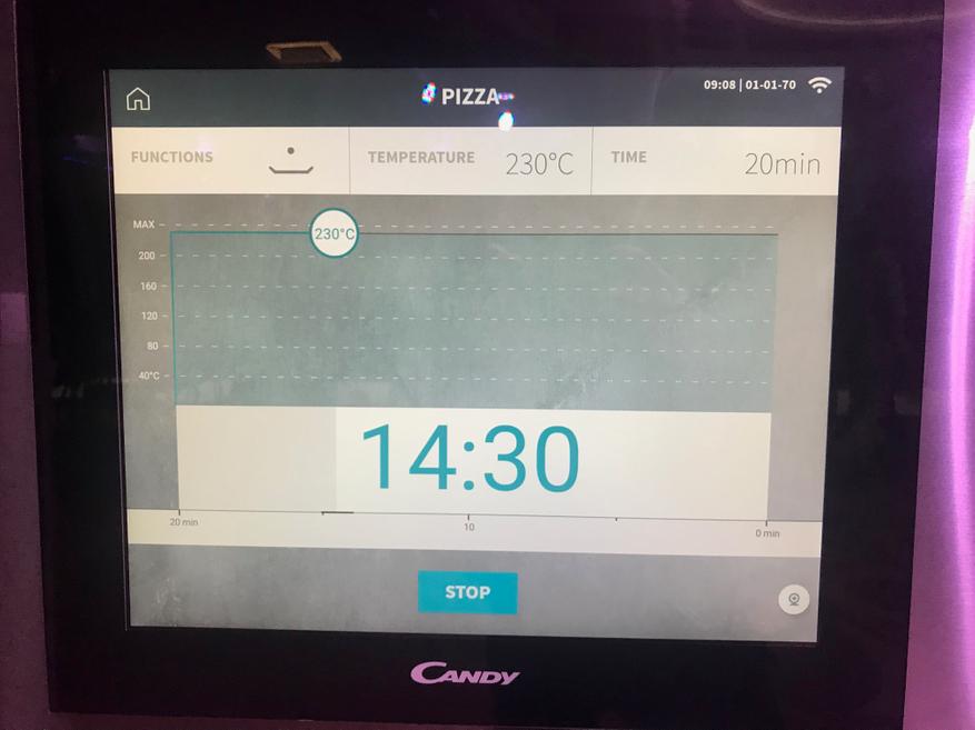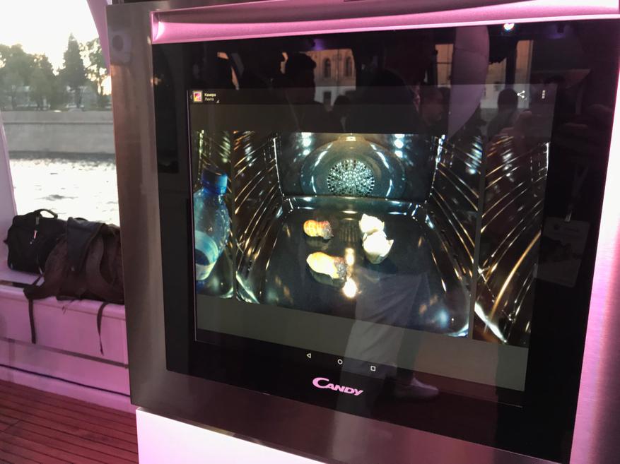 Если коротко — духовка с сенсорным управлением. На корпусе присутствует только одна физическая кнопка — кнопка включения. Все остальное отдано на откуп большому сенсорному дисплею, заменяющему классическое стекло. Программа, кроме управления духовым шкафом, может показать пользователю видео с популярными рецептами, помочь в процессе приготовления, а также продемонстрировать содержимое духового шкафа в прямом эфире.