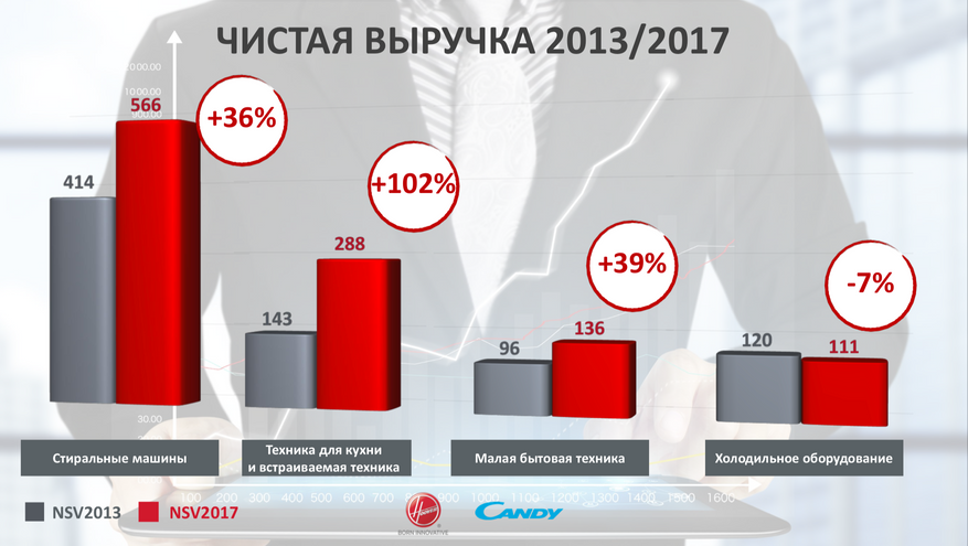Candy Hoover Group — не самая большая группа компаний, однако самая быстрорастущая. Самый быстрый рост, по данным 2017 года, пришелся на сегмент встраиваемой бытовой техники.