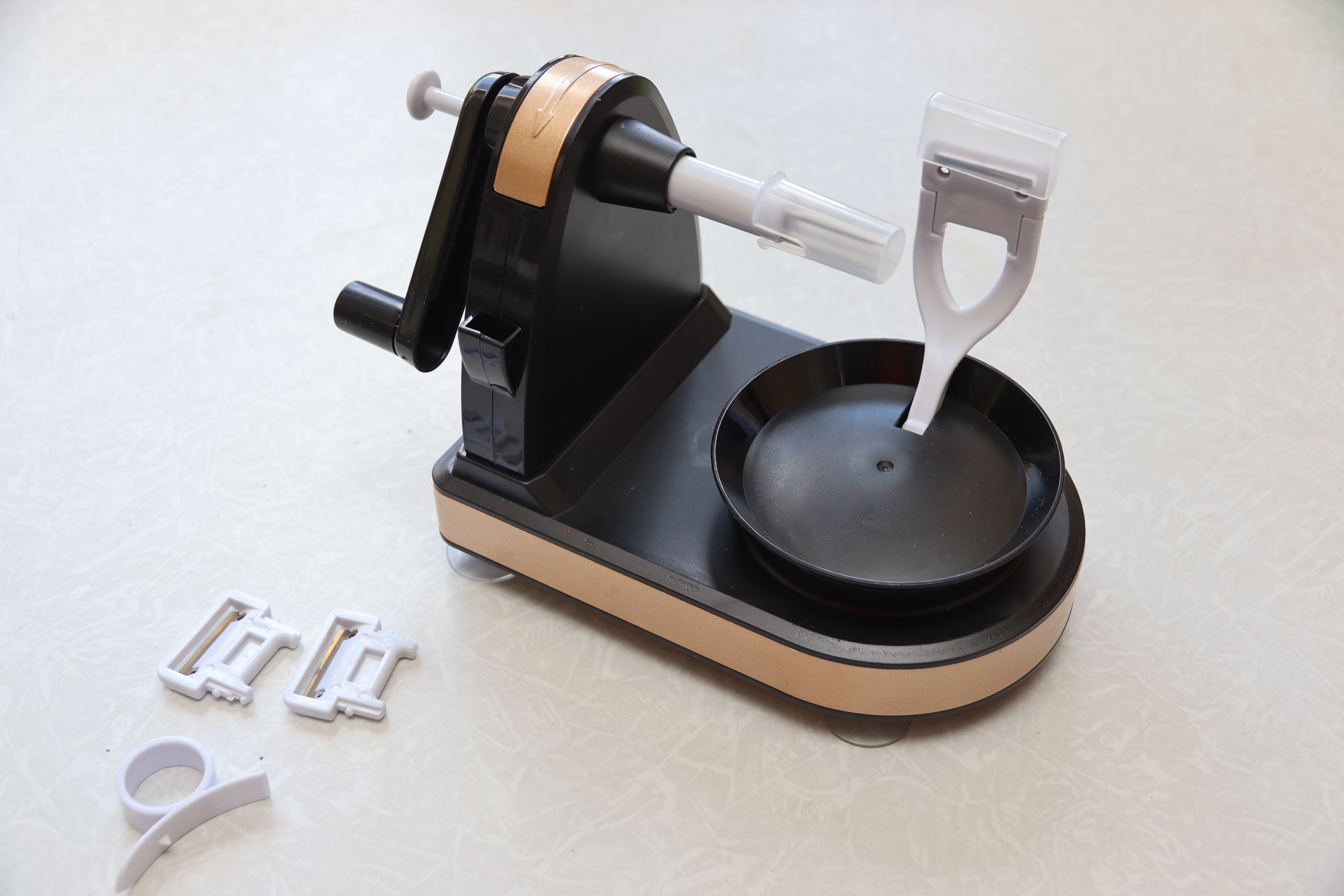 Я был скептически настроен к этой покупке. Пластиковая крутилка казалась хлипкой, нож вероятно тупым, а сама идея, даже если и хороша, скорее всего испорчена реализацией. Но все-таки я купил эту машинку, чтоб срезать кожуру яблок для маленького ребенка. Любой, кто готовил яблочные пюрешки для мелких, сталкивался с этой проблемой — занятие хлопотное и явно нуждалось в автоматизации.