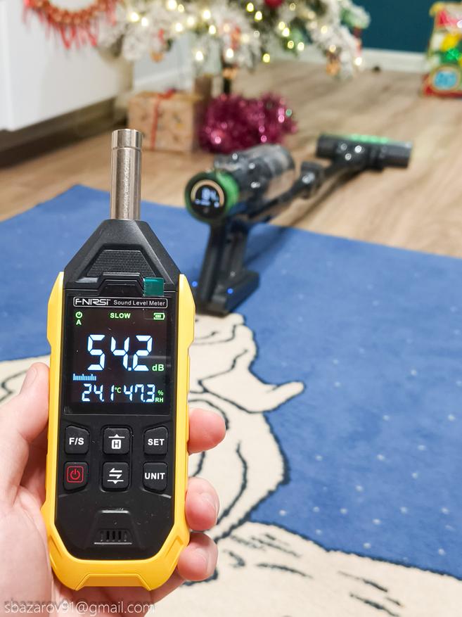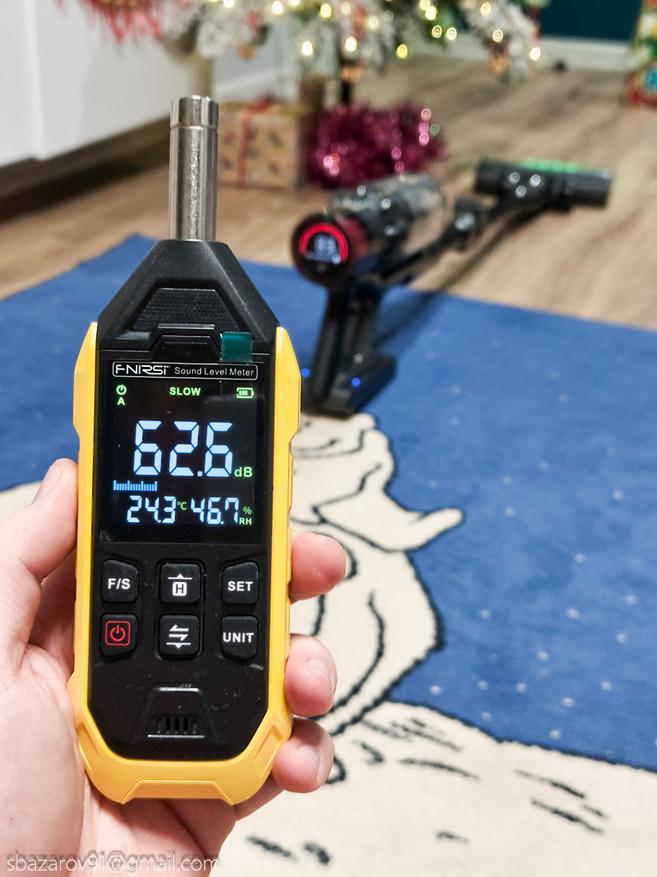 Ну и напоследок измерим уровень шума на всех трех режимах. Замер произведем с расстояния в 1 метр. Итоговый результат таков — работать пылесосом Redkey P11 можно если в соседней комнате спит ребенок. Уровень шума даже на максимальной мощности остается комфортным.