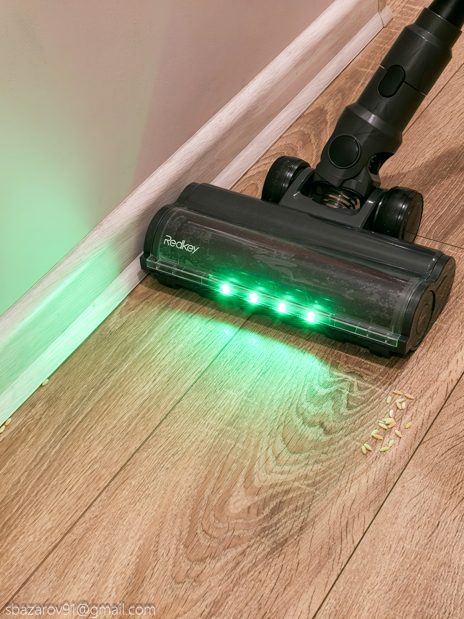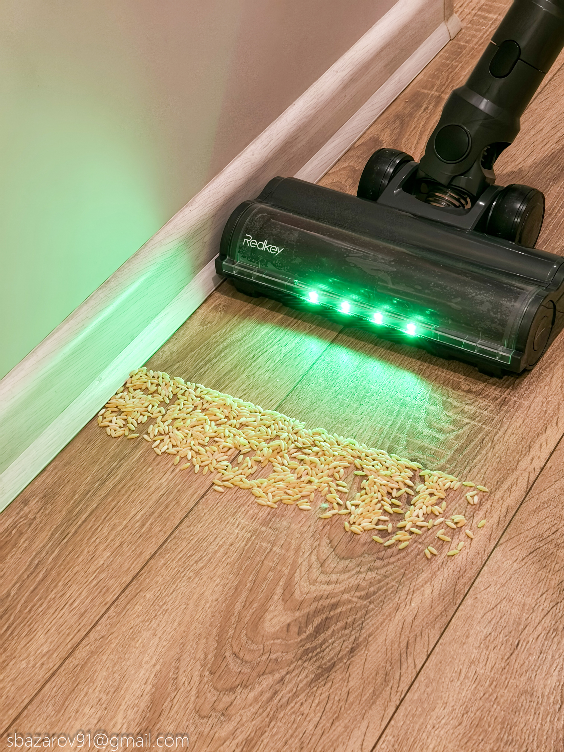 Так как конструкция напольной насадки не изменилась, то проблем с качеством сбора мусора вдоль плинтуса быть не должно. Для тех, кто не читал мой предыдущий обзор пылесоса Redkey F11, отмечу, что там я рассыпал рис около плинтуса и оценивал качество уборки по количеству оставшихся рисинок. F11 тогда справился на отлично, оставив после себя всего 6 крупинок вдоль плинтуса. В случае в P11 результат оказался даже лучше — риса осталось не более 2-х штук.