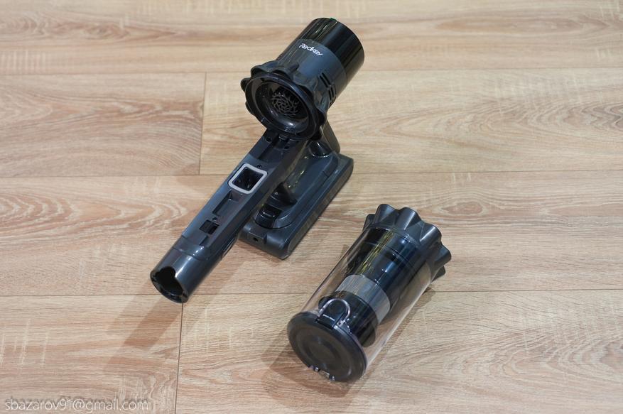 С точки зрения дизайна, основные отличия касаются цветового оформления некоторых элементов. Например, в F11 все фиксаторы красного цвета, тогда как в P11 уже черного. Еще одно заметное отличие касается системы фильтрации и сбора мусора, в младшем P11 она немного упрощена, но к этому вернемся позже. По габаритам Redkey P11 практически идентичен предыдущему пылесосу — 114x26x19см см при весе в 2.9 кг (17,5x114x16 см, вес 3.1 кг).