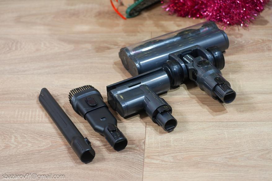 Последняя позволяет хранить сменные насадки и сам пылесос, а также автоматически его заряжать.