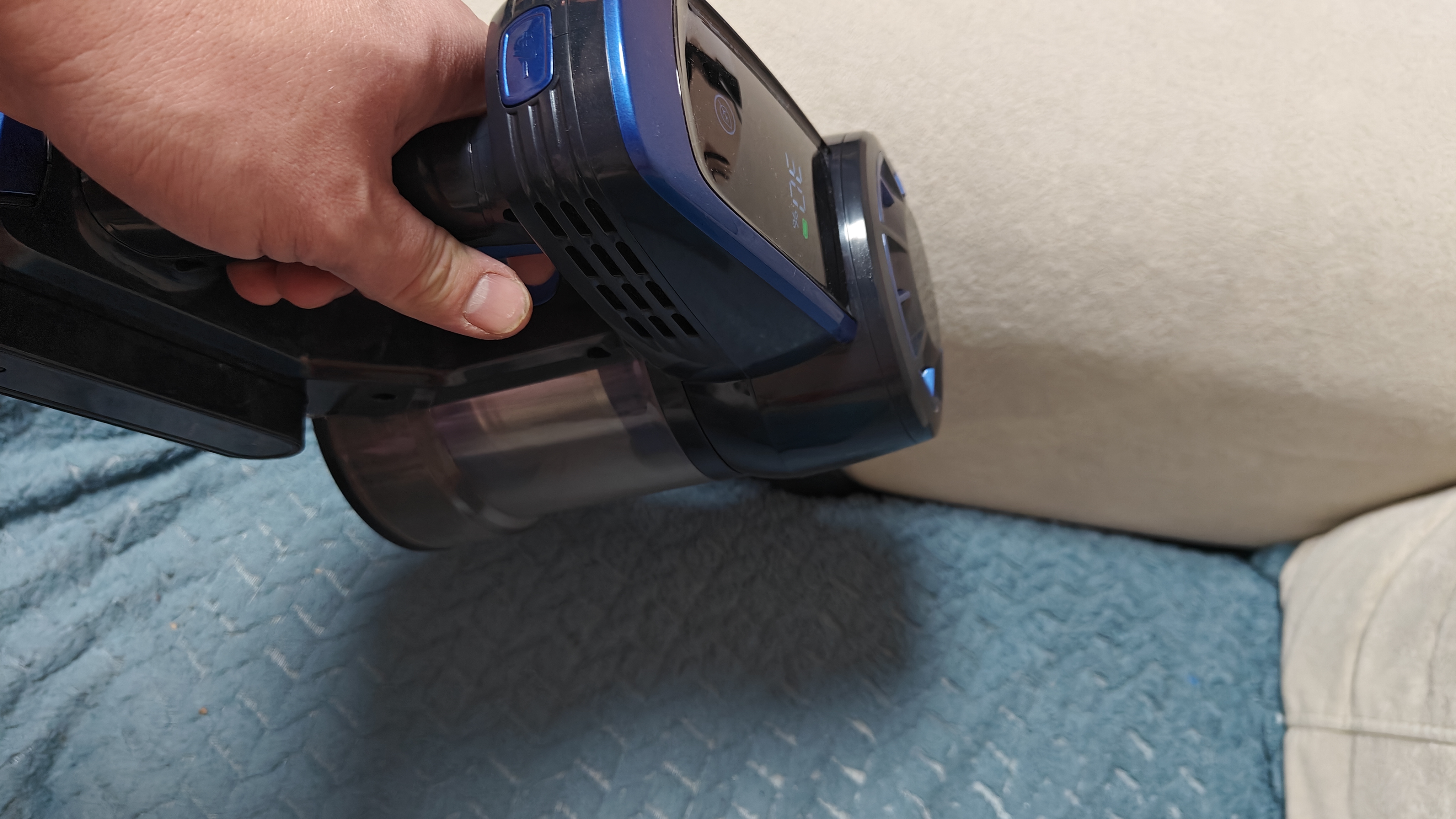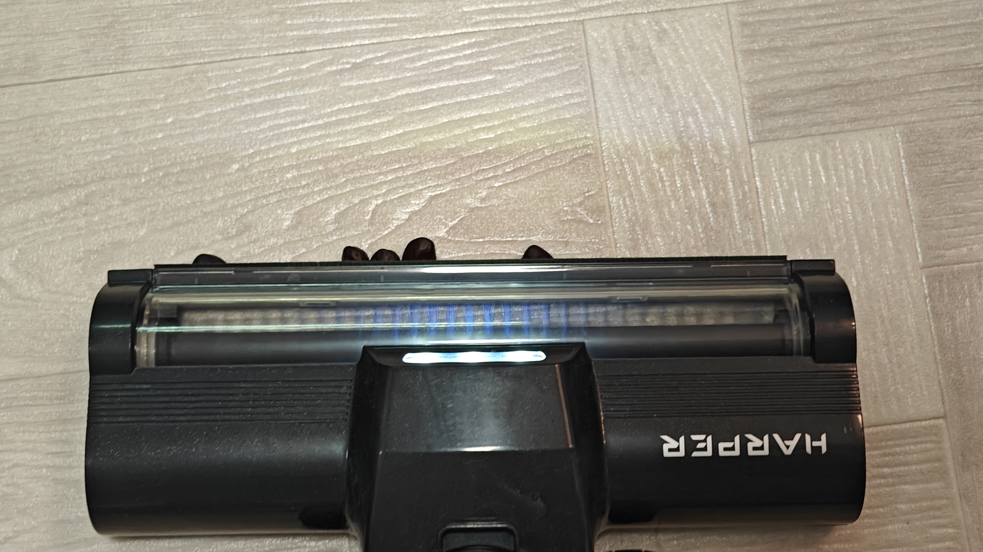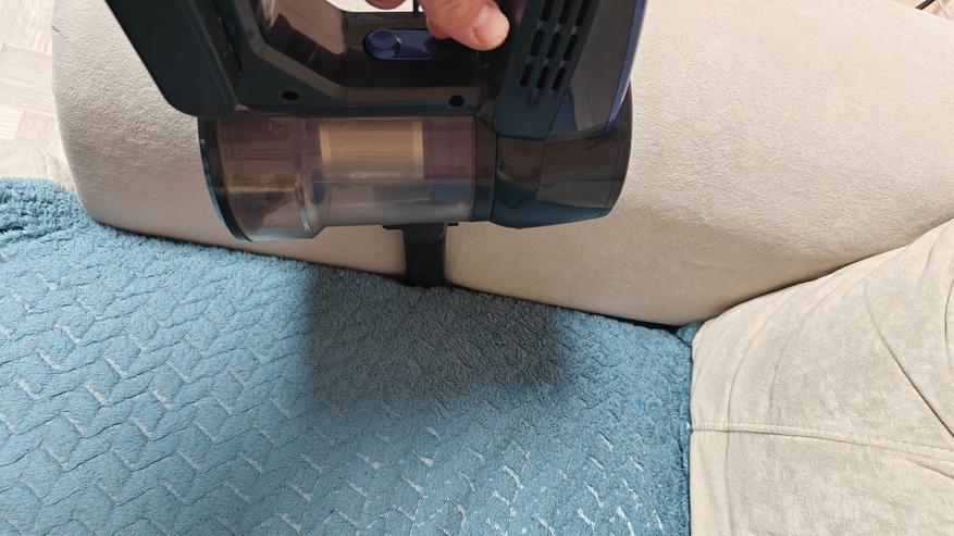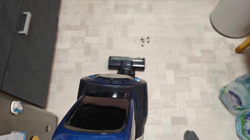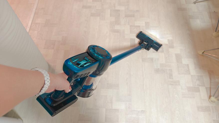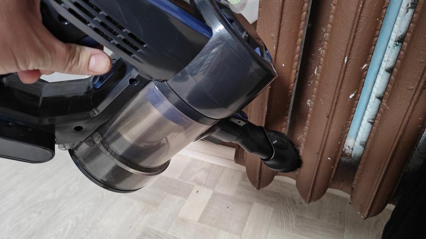 Стоит сразу указать, что я попросил провести уборку этим пылесосом свою супругу, чтобы более корректно оценить легкий ли он, и это реально так. Его легко схватить, собрать рассыпанный мусор, провести быструю уборку. Аккумулятора хватает на 40 минут в слабом режиме всасывания. В турбо режиме хватит на 15-20 минут. Подсветка на насадке уже такая привычная деталь, которая реально подсвечивает мусор, что без нее уже сложно представить пылесос.