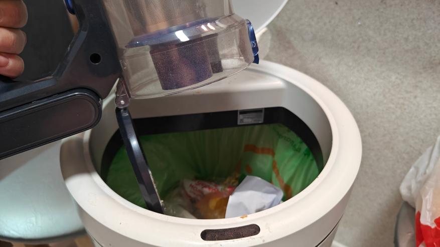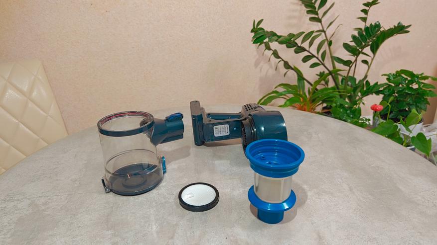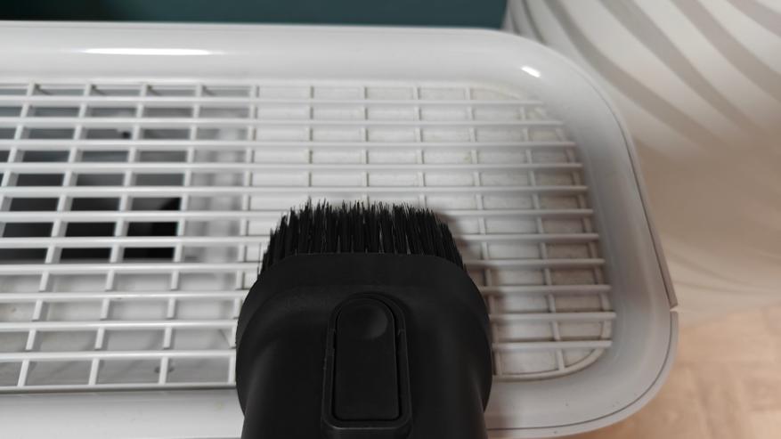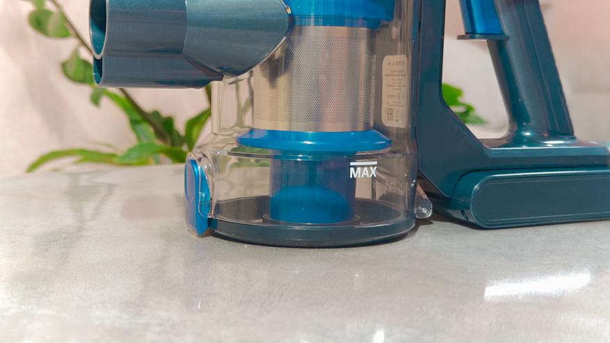 После уборки можно просто нажать кнопку на контейнере и вытряхнуть мусор в урну. Сделать это быстро и удобно. Саму фильтрующую систему можно промыть под водой и просушить.
