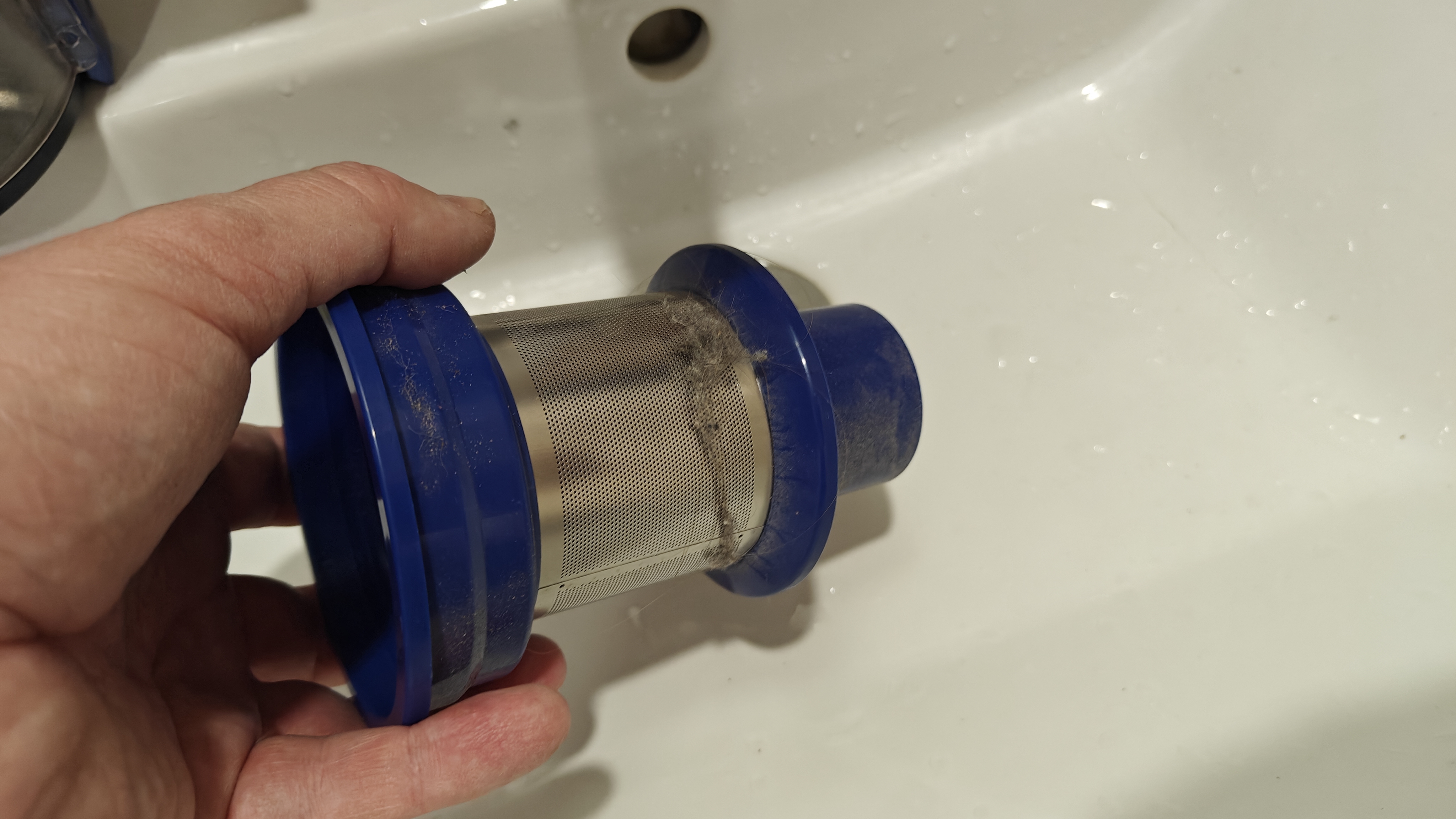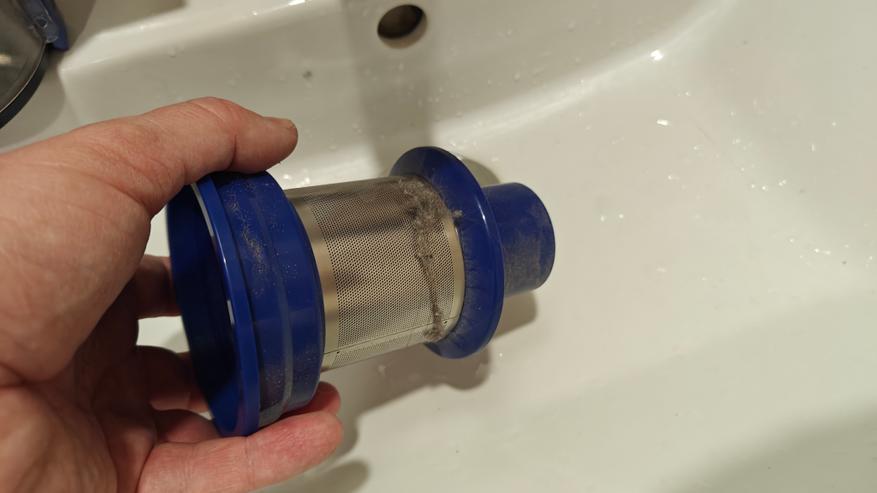 Для начала ознакомимся с разборкой системы фильтрации. Снимаем контейнер, против часовой стрелки выкручиваем фильтр. Это металлический сетчатый фильтр, дополненный Hepa фильтром. Такая система требует более частой очистки, чтобы не падала мощность всасывания. Но она же и повсеместно используется в подобных пылесосах такой стоимости.