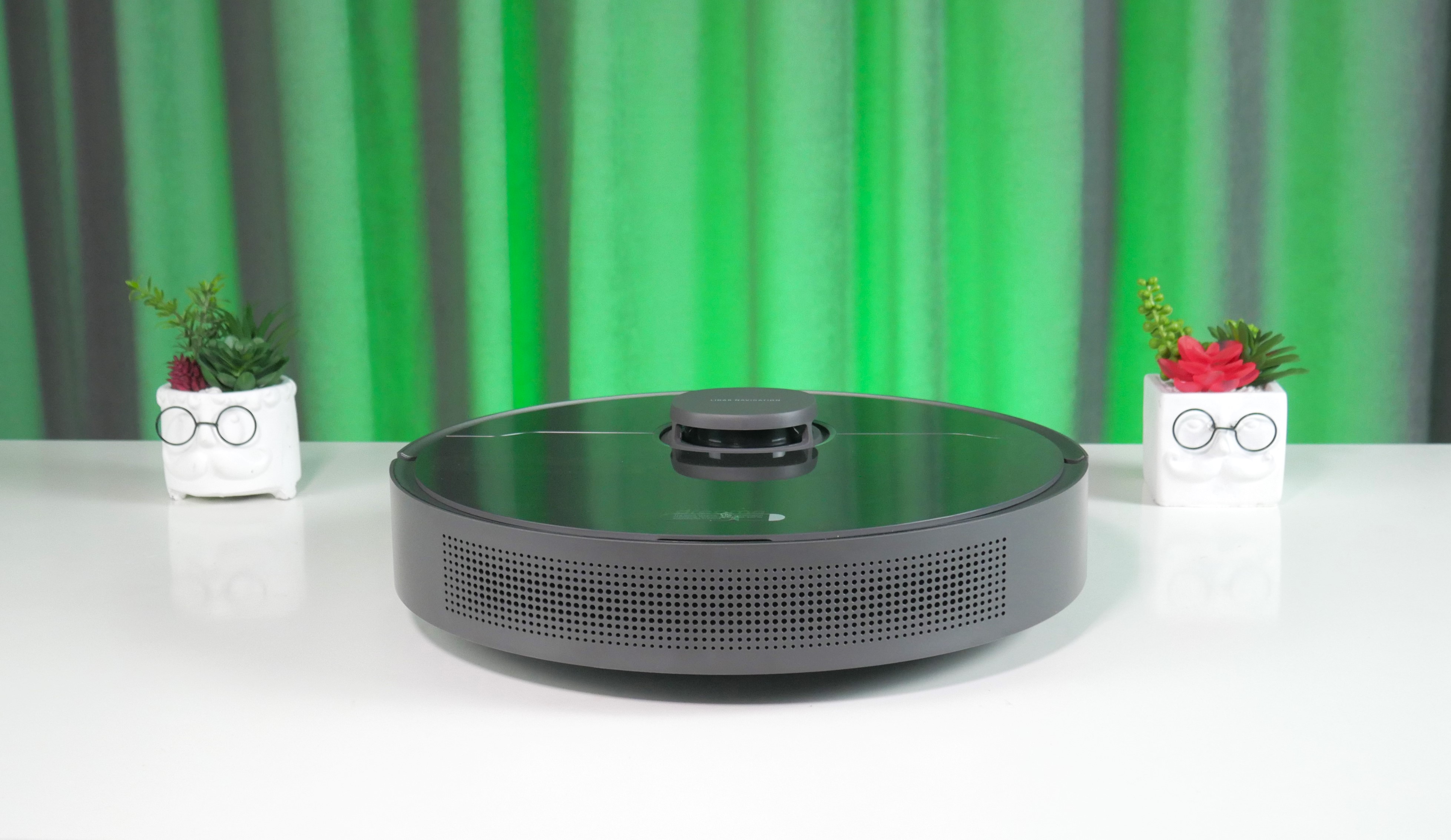 Традиционно для производителя робот сделан в виде шайбы. Экземпляр серого цвета — самый сбалансированный: выглядит дорого и не показывает отпечатки пальцев. Габариты стандартные, высота 95 мм.