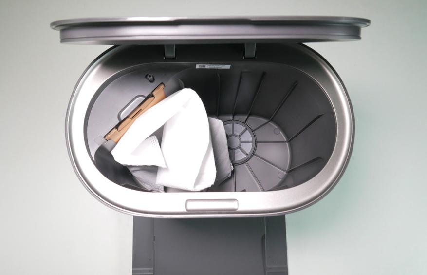 Робот заезжает по колее так, чтобы люки в его днище совпали с отверстиями в пандусе, после чего станция вытягивает собранный мусор в мешок, расположенный в отсеке наверху.