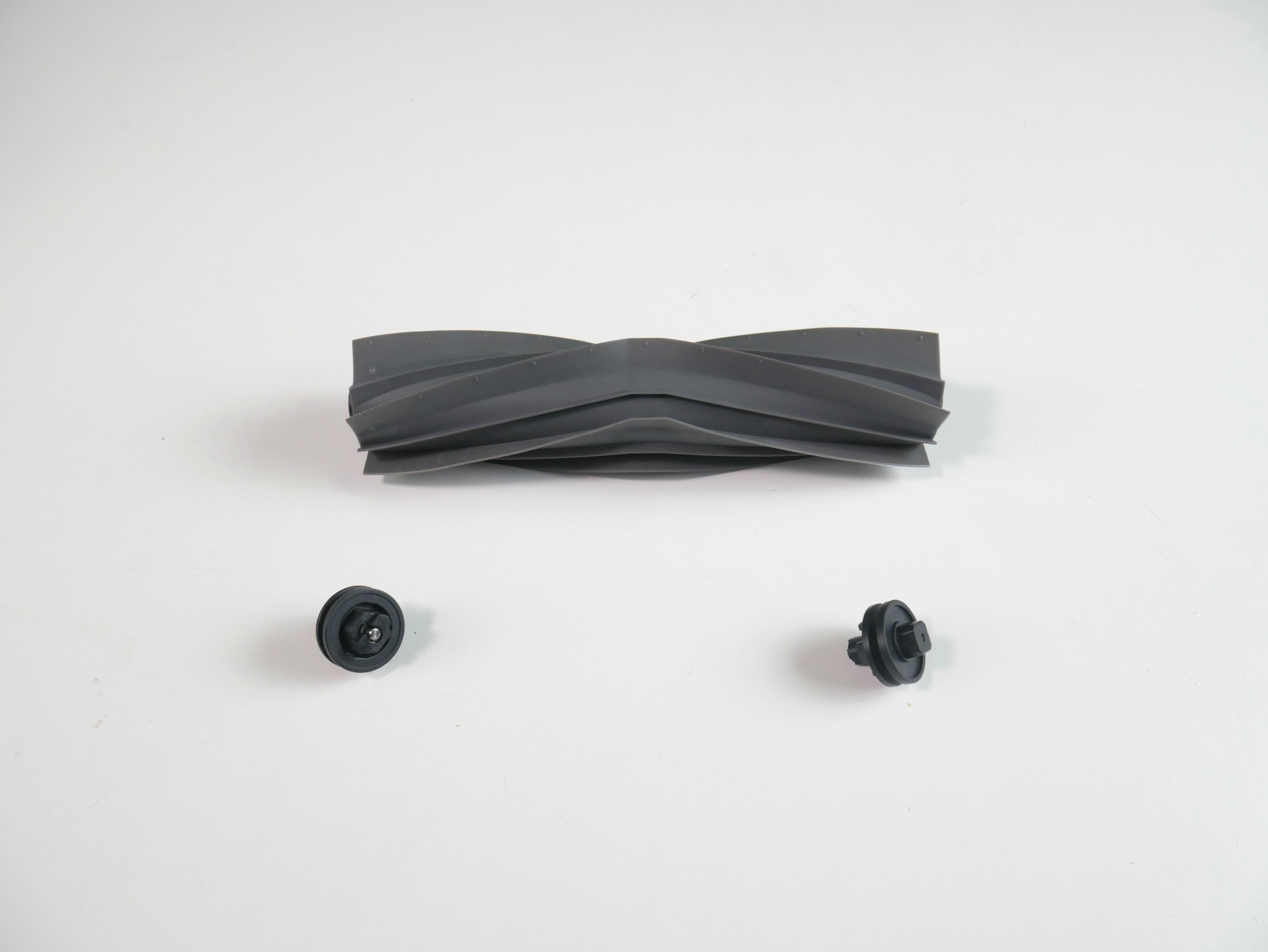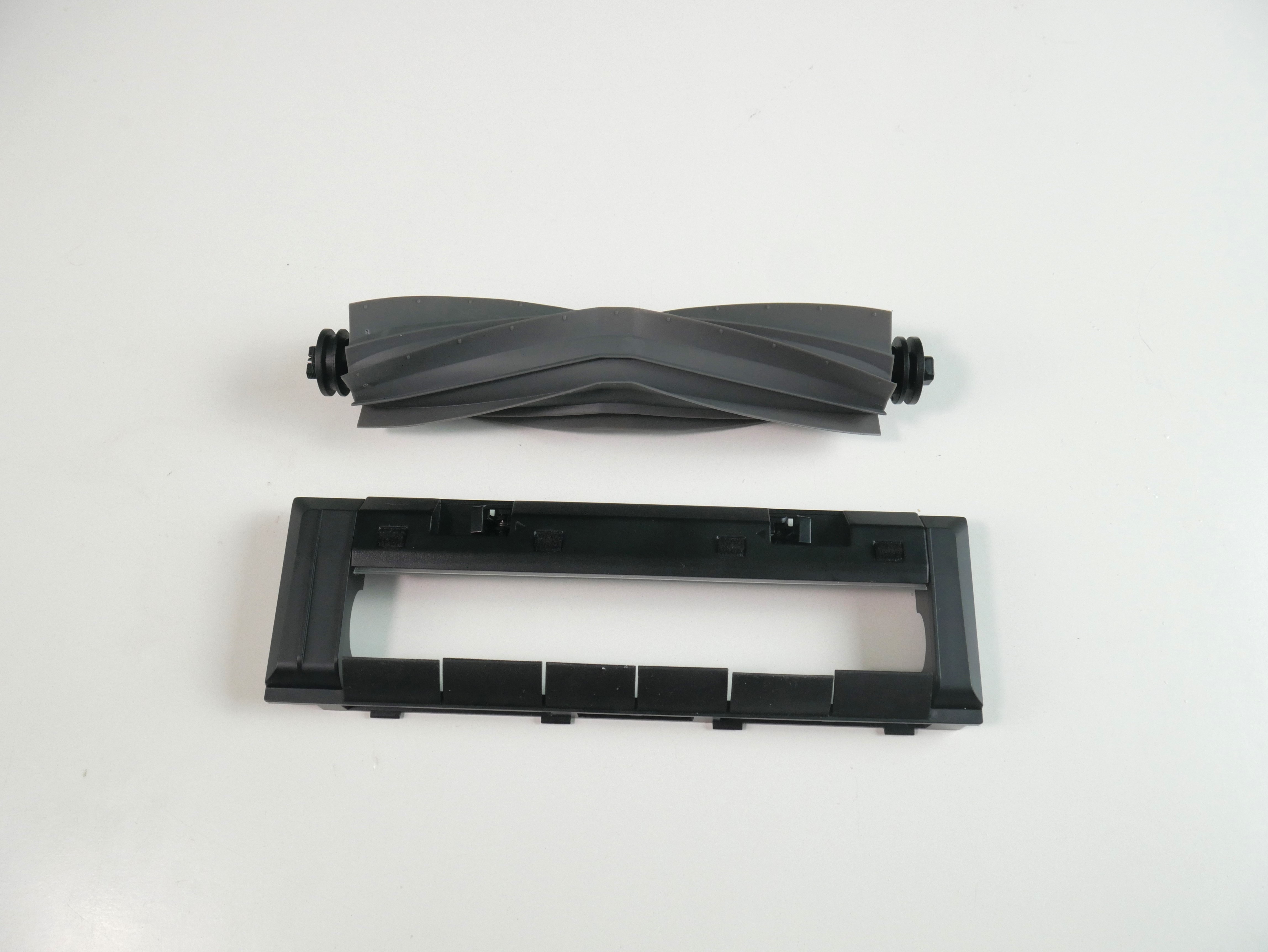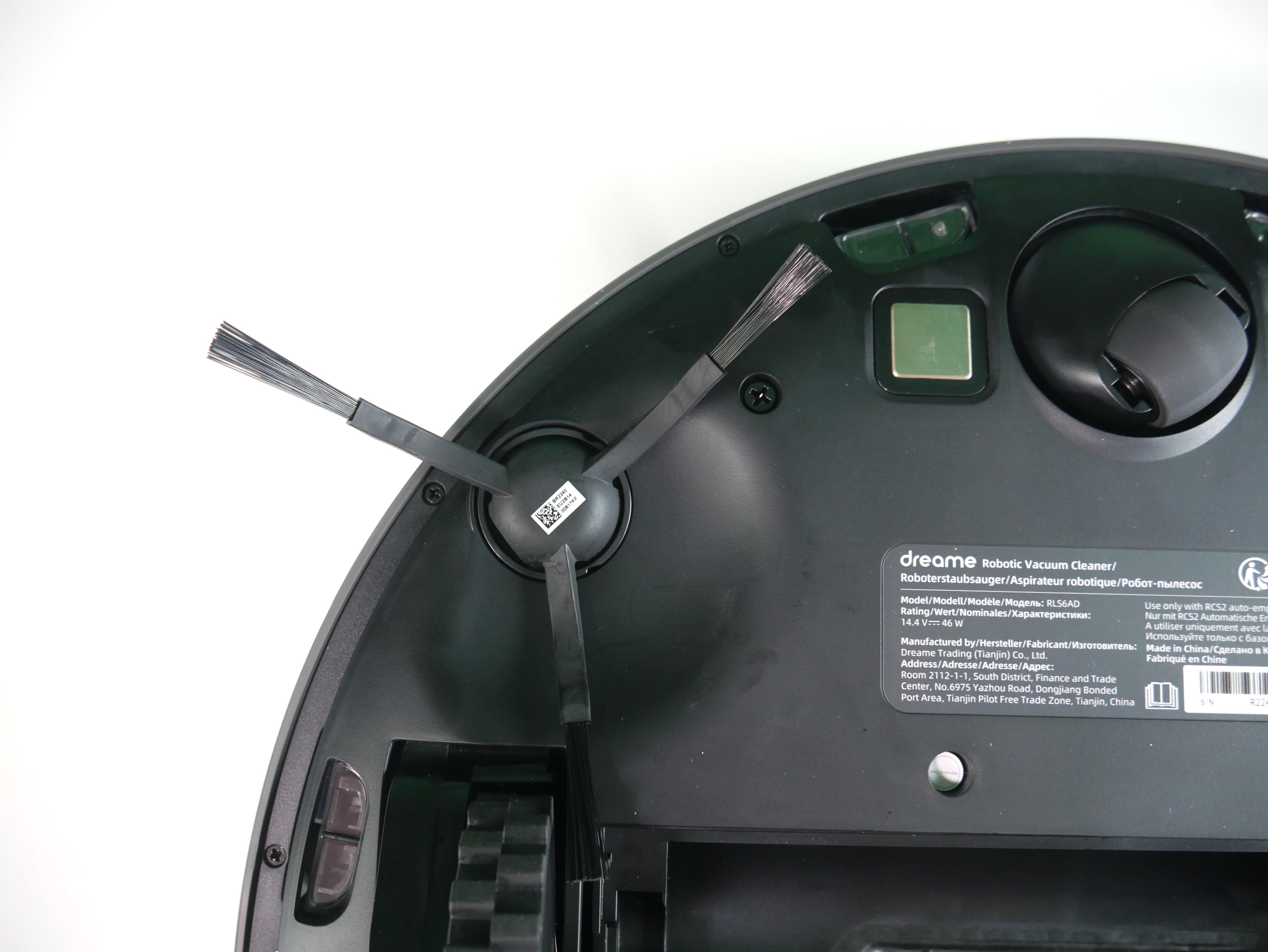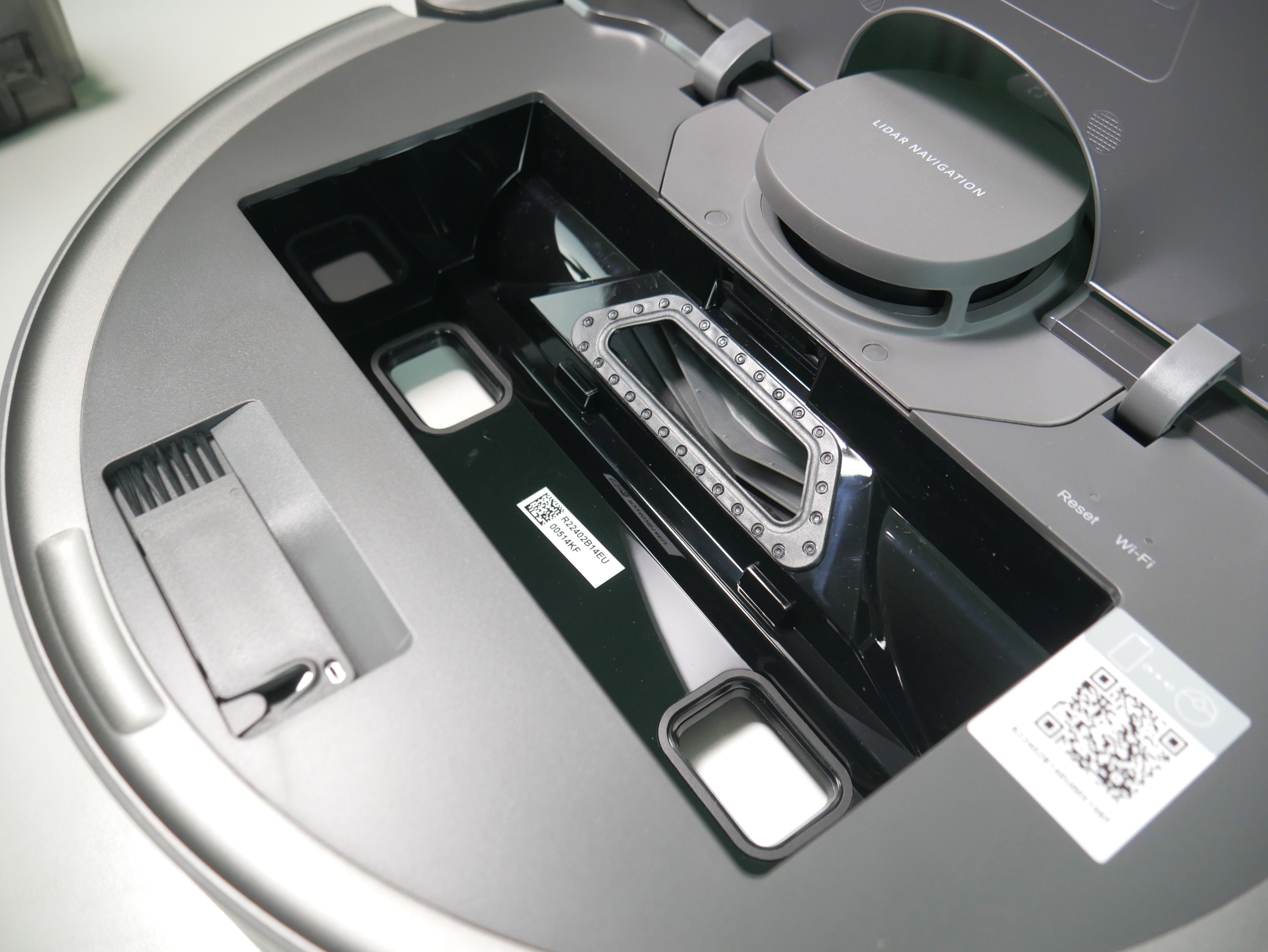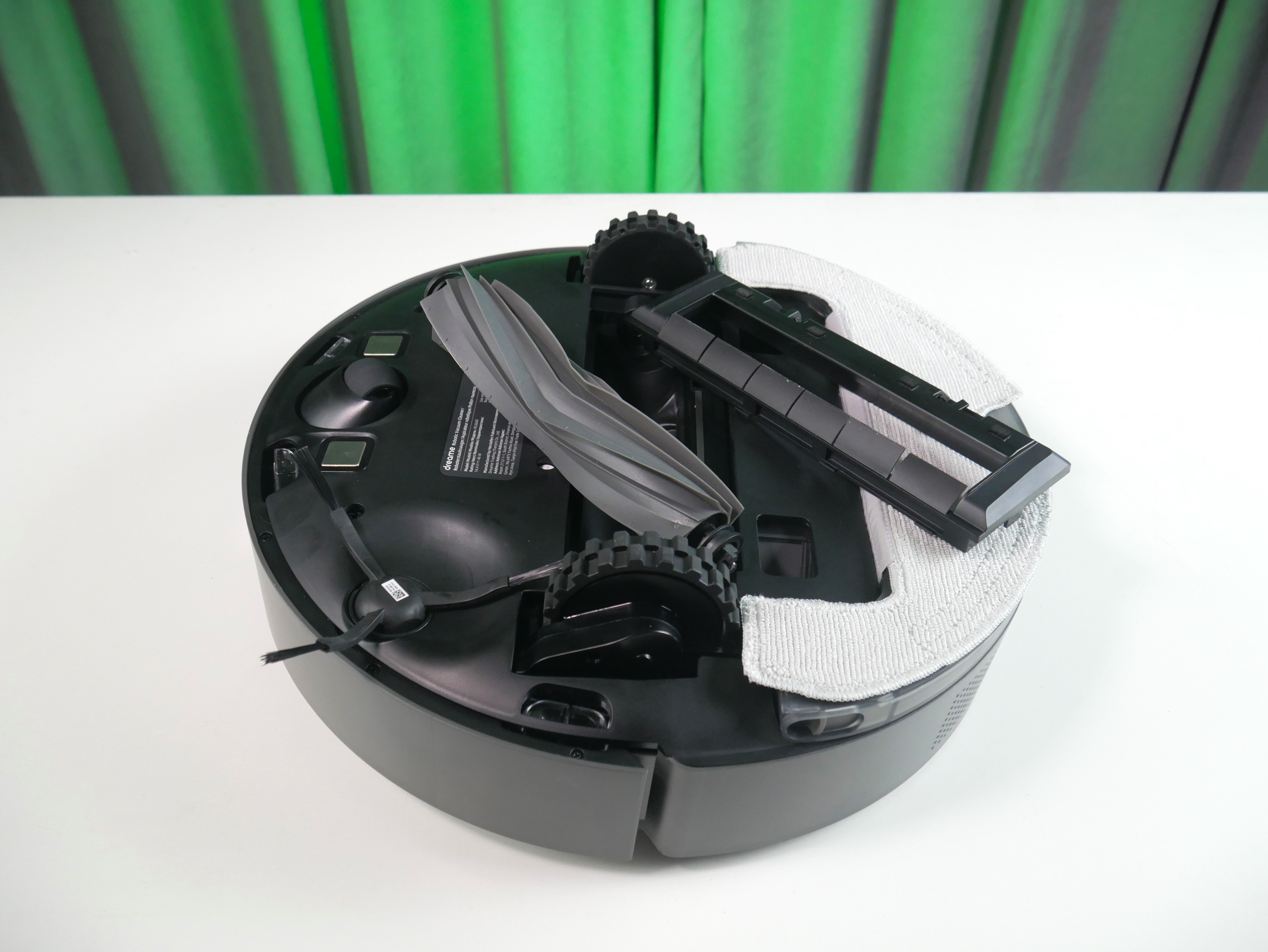 Рабочие инструменты такие же, как у Dreame L10 Ultra: резиновый валик и торцевушка с длинными поводками. Вместо мопов — статичная швабра, ещё и с вырезом под люк (читать с паузой между словами ???) самоочистки.
