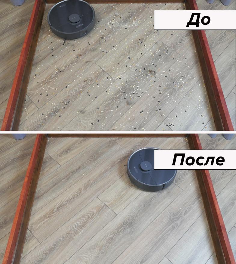 Единственная реальная проблема — постоянные отъезды от стены при движении по периметру. Если бы у Dreame D10s Plus был TOF-сенсор, робот бы двигался по прямой линии, аккуратно заметая соринки, а без TOF-сенсора он периодически отъезжает в сторону, оставляя необработанные участки.