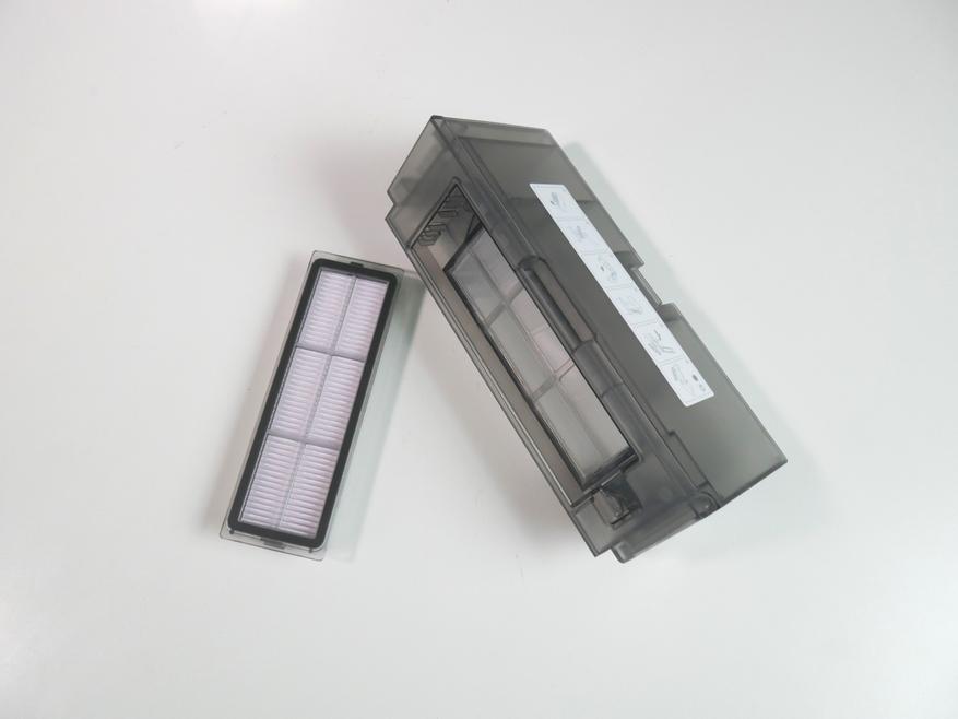 Пылесборник с двойной фильтрацией (НЕРА + сетка), но не самый удобный с точки зрения обслуживания — вытряхнуть, не запачкав руки, не получится. Впрочем, делать это и не требуется, — не зря же в комплекте станция с мешком.