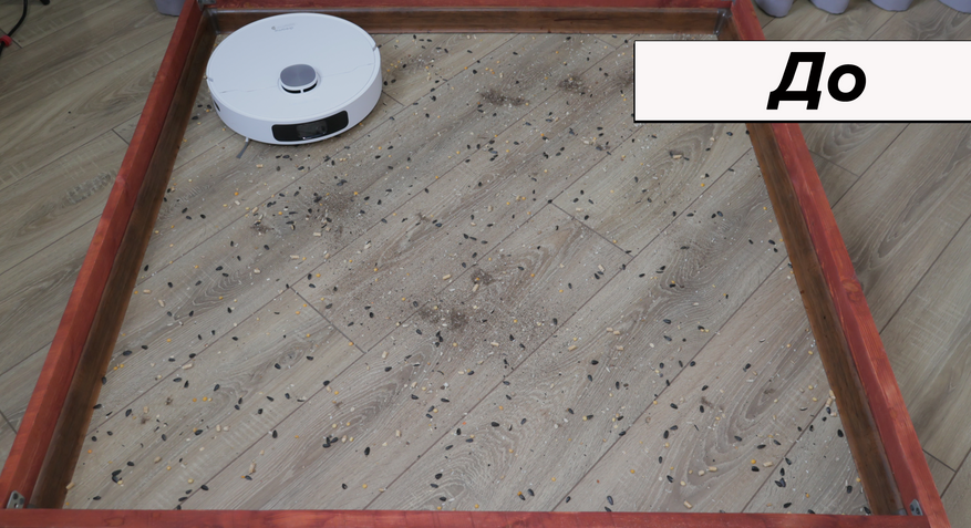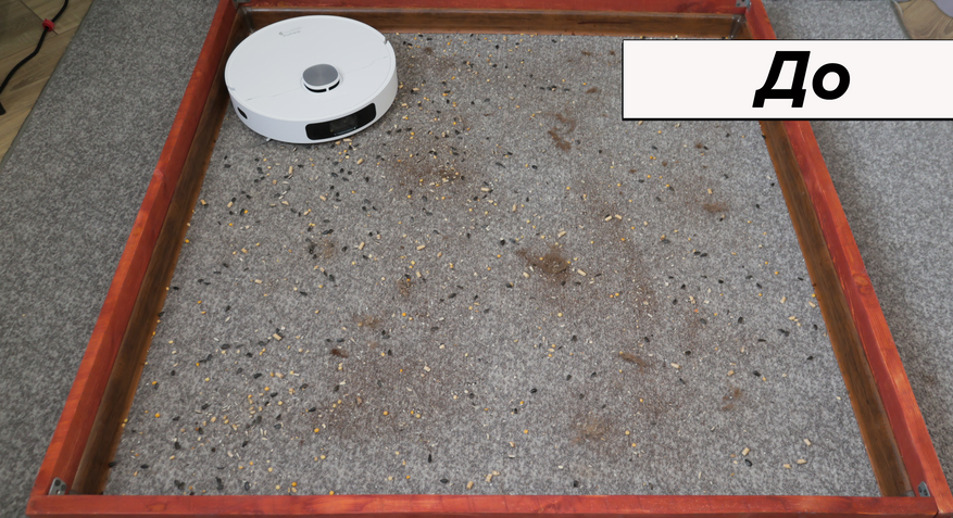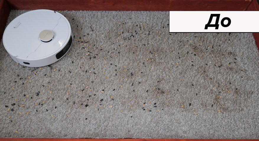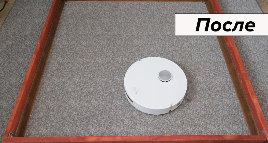 - 95% на ковролине — поверхность выглядит абсолютно чистой, соринки попадаются только на периферии;