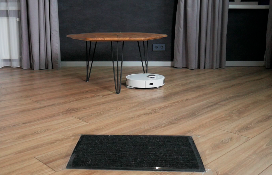 Навигация у этой модели классическая: робот обрабатывает пристенные зоны, затем бегает по квартире змейкой, ориентируясь преимущественно на показания лидара. Ножки мебели обстукивает бампером и обметает. На перекладины сушилки забирается и переваливается на другую сторону. Такую мебель желательно обводить запретными зонами.