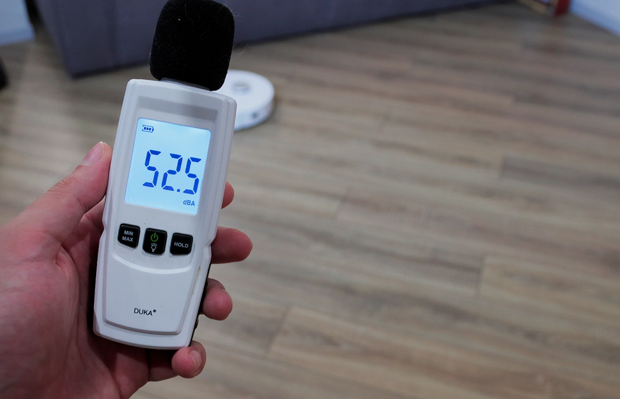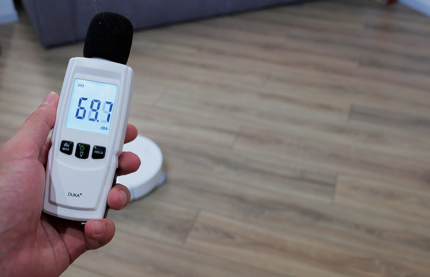 Диапазон шума у этой модели стандартный — 53-70 дБ, в зависимости от выбранного режима. На максималках находиться с пылесосом не очень комфортно. Уборку лучше планировать, пока никого нет дома.
