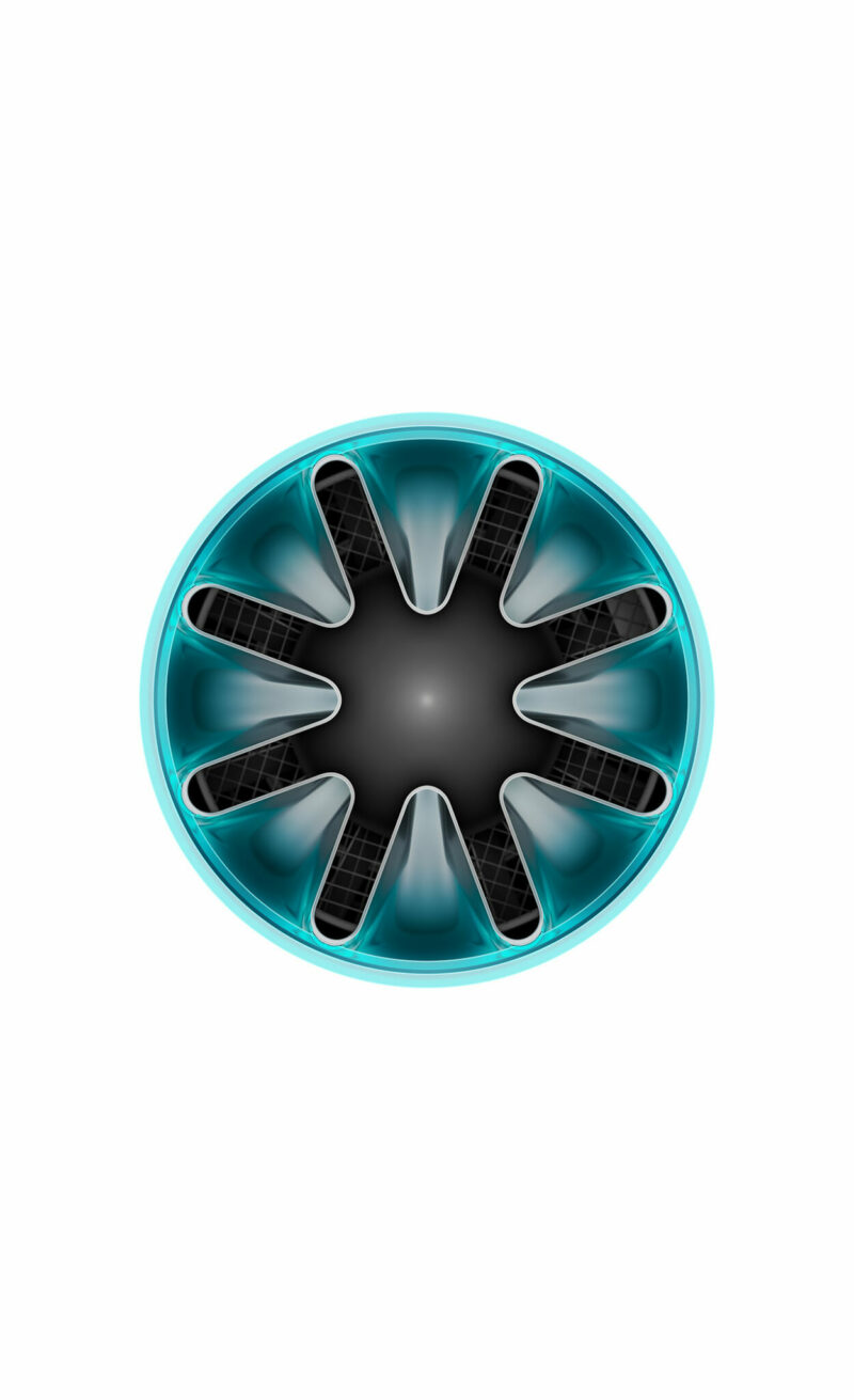 Очиститель имеет коническую форму корпуса и оснащен закругленным соплом вентилятора звездообразной конфигурации. Производитель выпускает устройство в двух цветовых вариантах: светло-сером и черно-синем. Конструкция сопла разработана для увеличения скорости воздушного потока по принципу концентраторов в фенах.