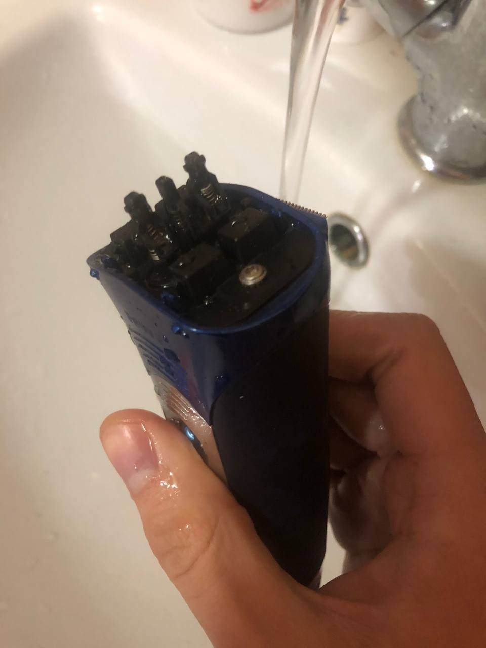 Из плюсов отмечу — это встроенный аккумулятор, возможность быстрой зарядки бритвы, чистку под струей воды, немецкую сборку и лезвия, которые очень классно убирают щетину и не оставляет раздражения на коже.
