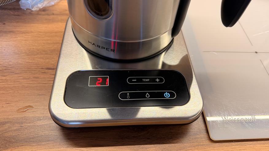 Чайник понравился возможностью выбора и поддержки определенной температуры, Он довольно стильный, с классическим дизайном, подсветкой и сенсорным управлением. Есть вопросы к качеству материалов, они не самые премиальные. Но за свою цену он кажется вполне неплохим приобретением.