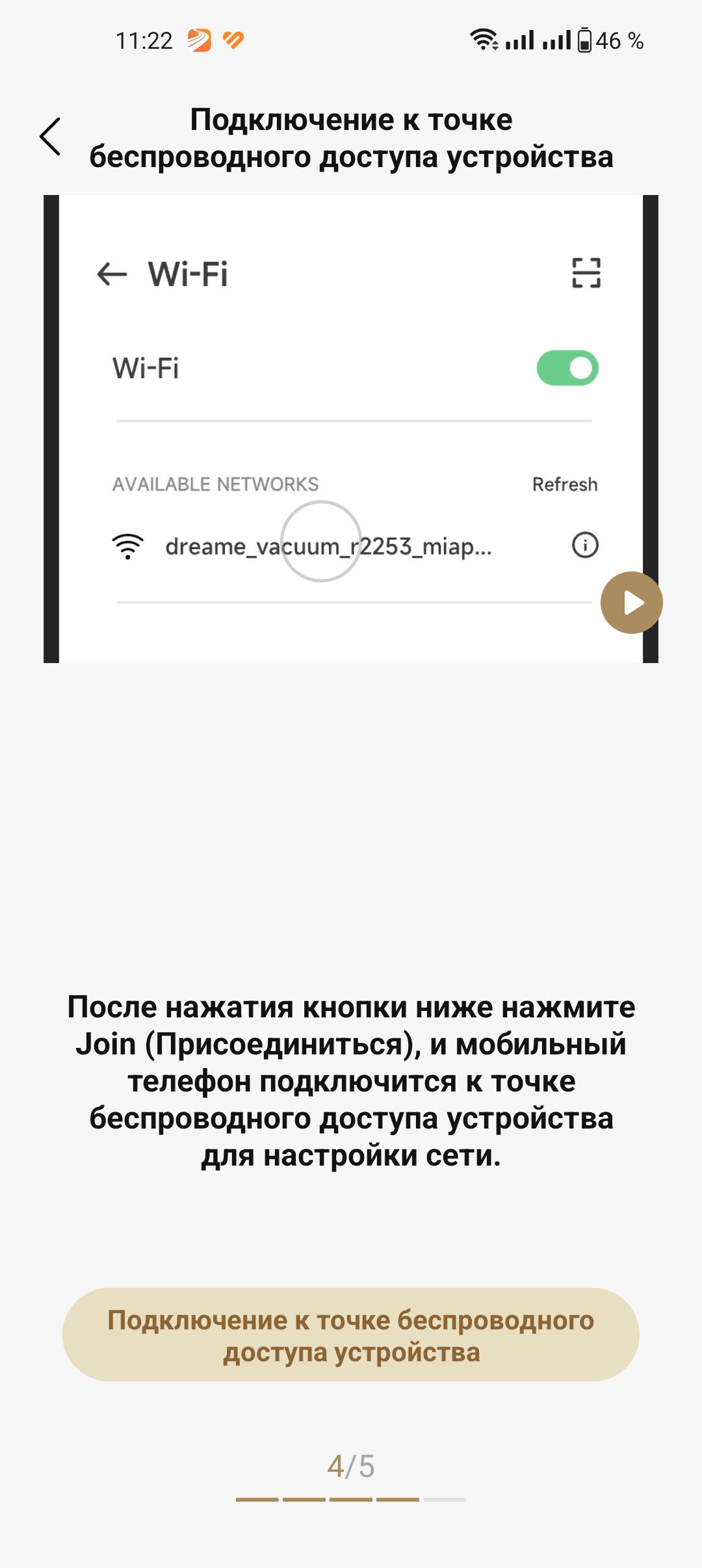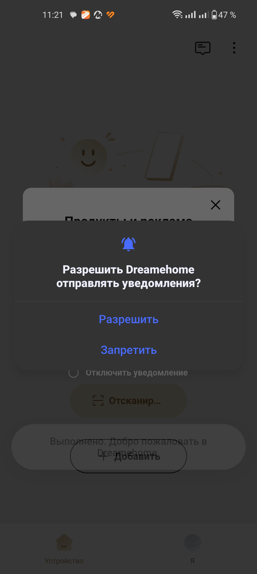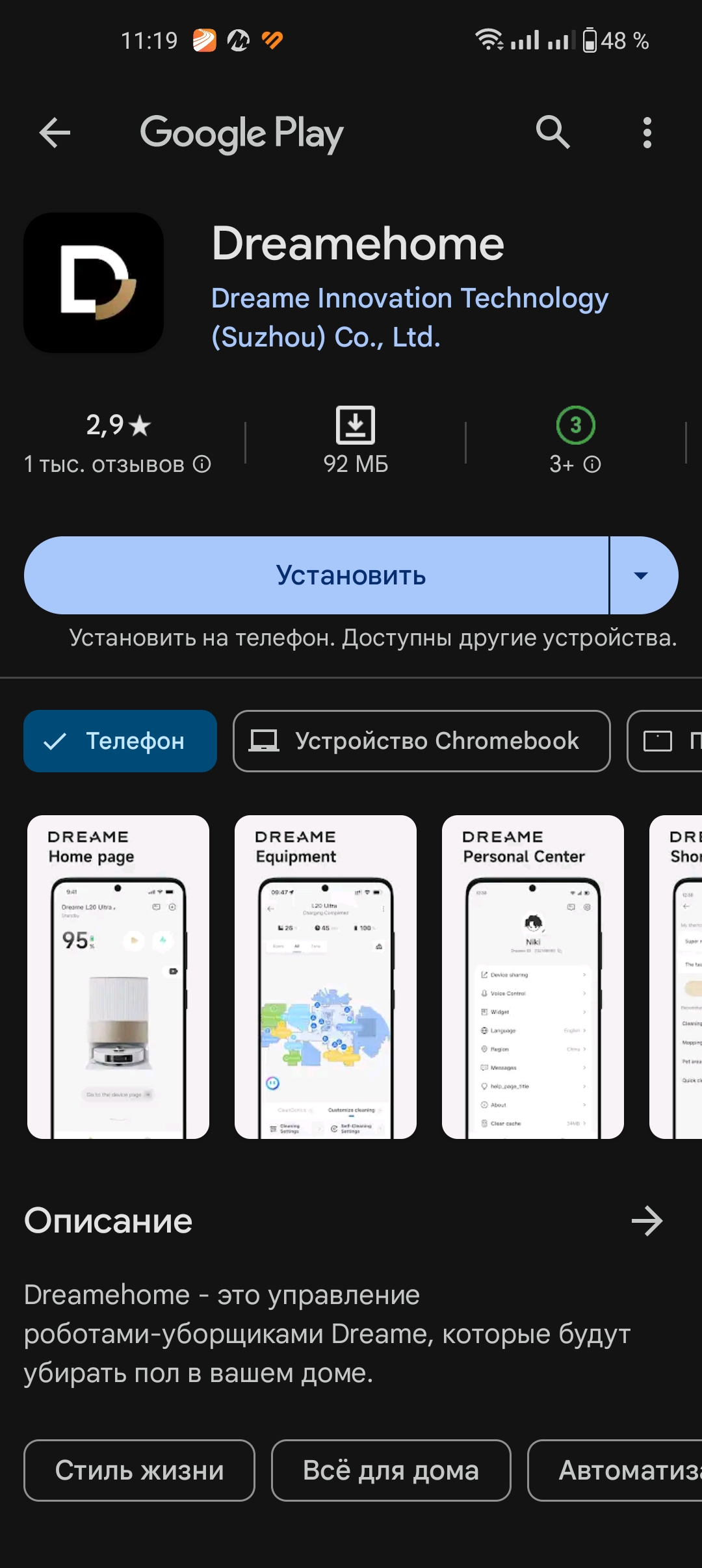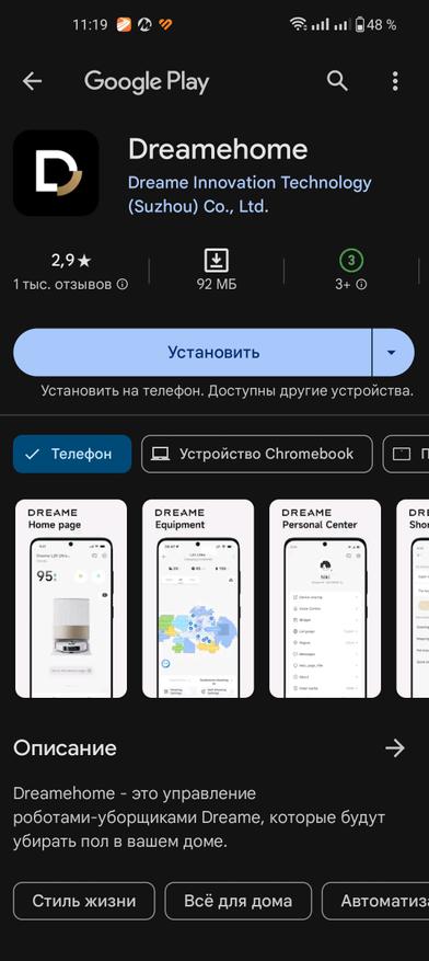 Для работы с пылесосом нужно приложение DreameHome. Подключение занимает буквально несколько шагов и интуитивно понятно, благодаря четким инструкциям на русском языке.