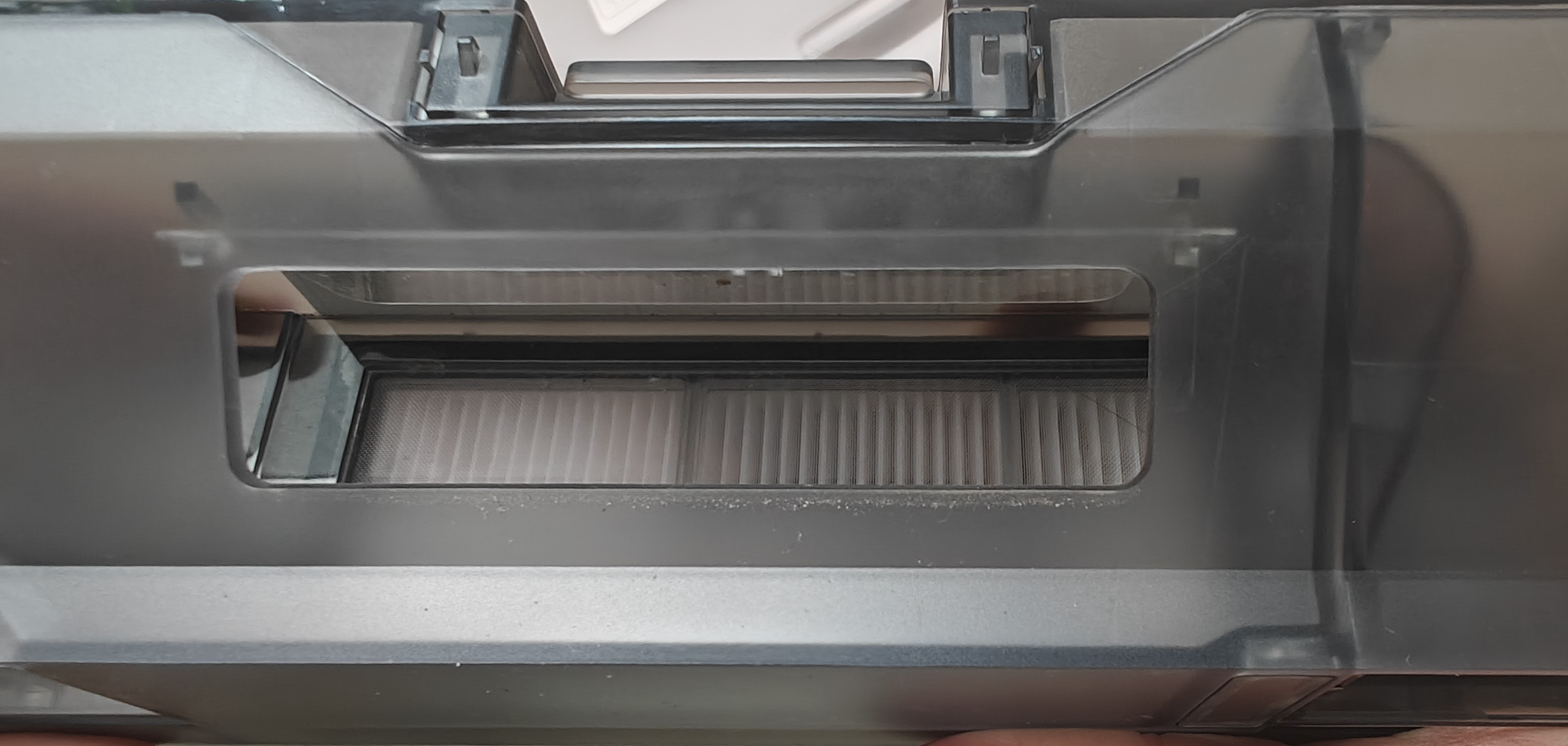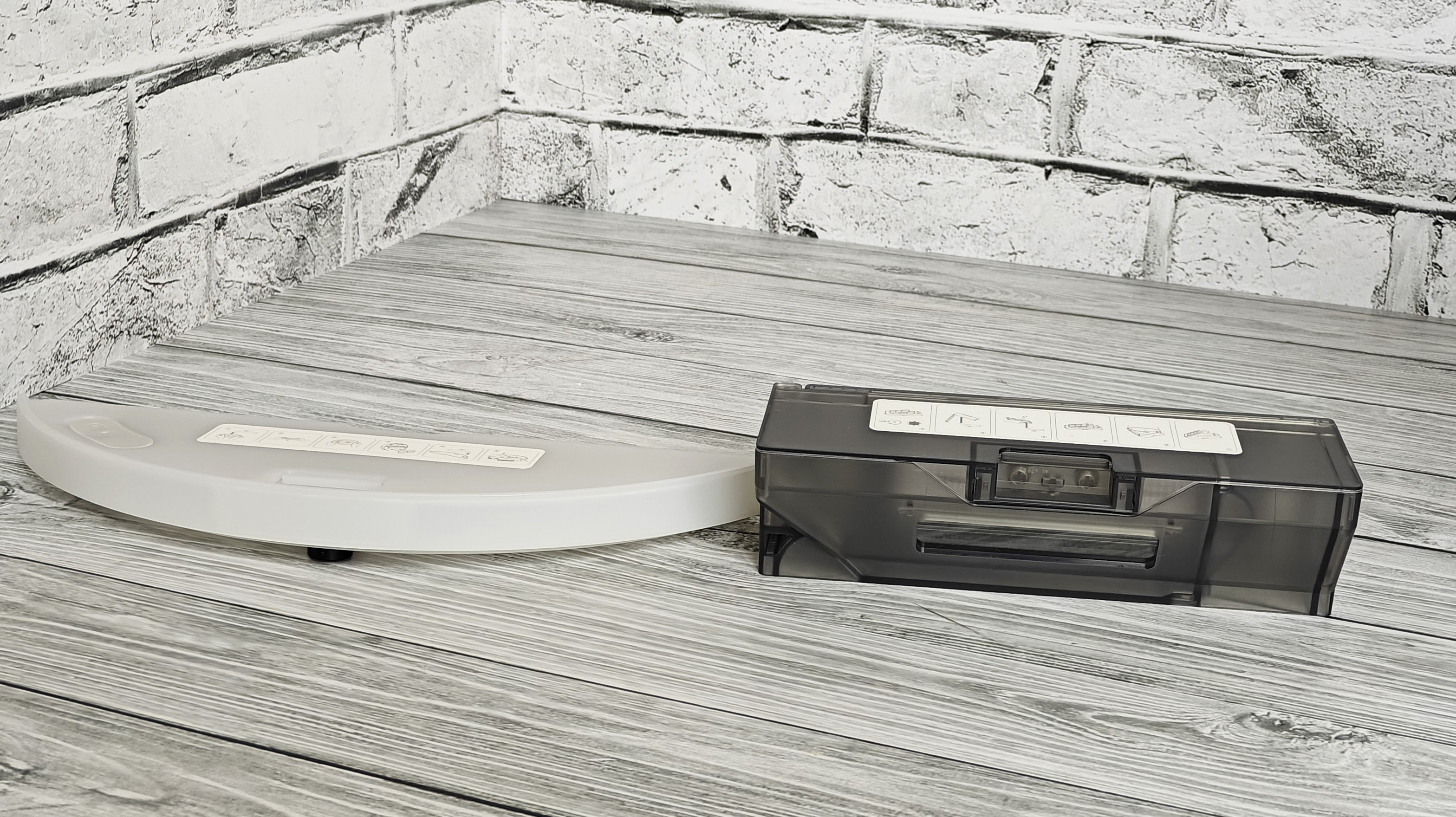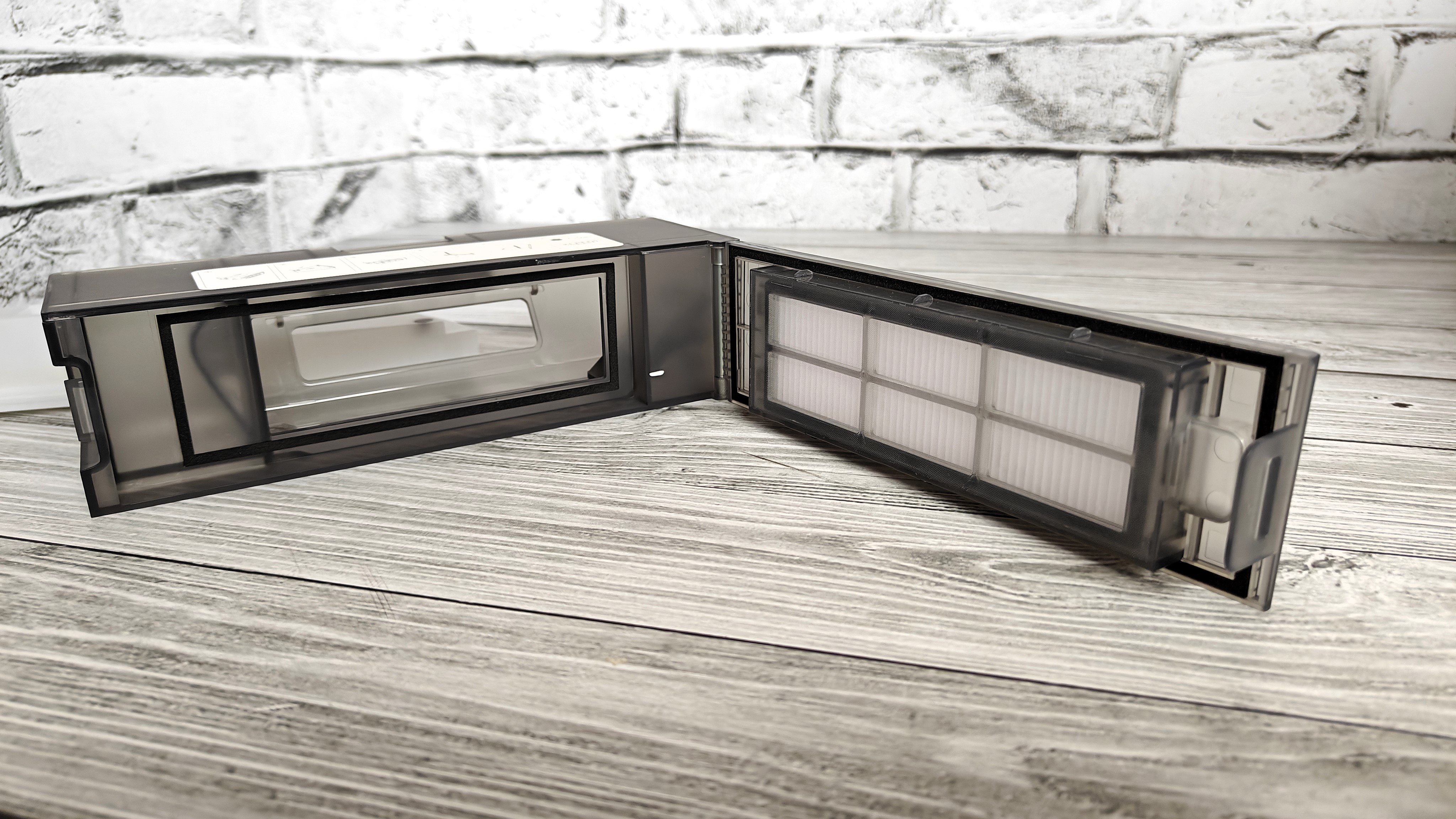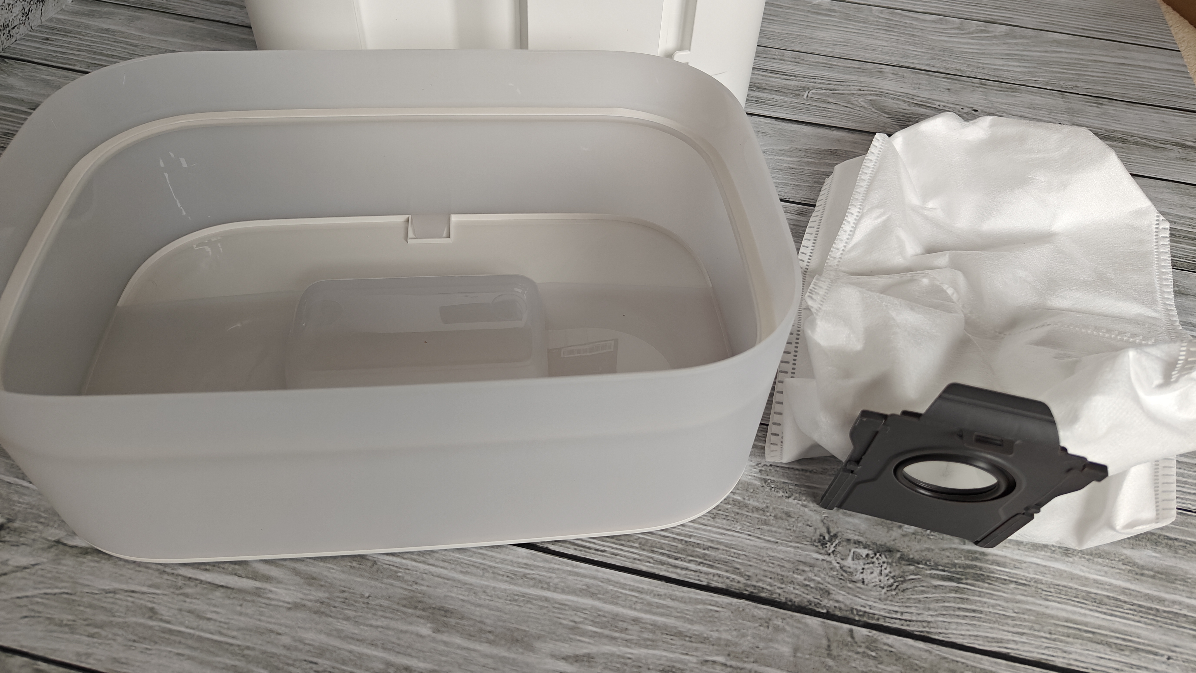 Сам контейнер имеет клапан с одной стороны, где заходит мусор и отверстие для забора мусора в станции самоочистки. Разумеется, можно его открывать для прочистки.
