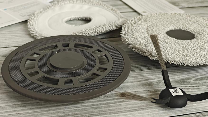 Теперь осталось только установить щетки. Делать это просто. Сами щетки держаться при помощи магнитов. Боковая щетка устанавливается привычным образом.