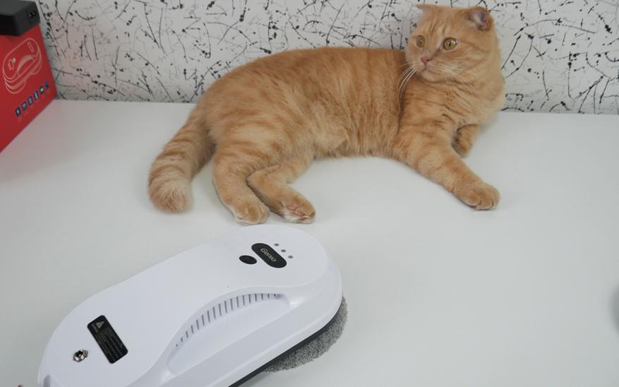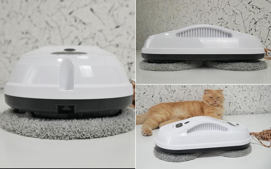 Вес робота средний — 1,5 кг, а до кнопки включения можно дотянуться указательным пальцем. Так что манипулировать удобно даже с наружной стороны окна. Высота корпуса — 95 мм.