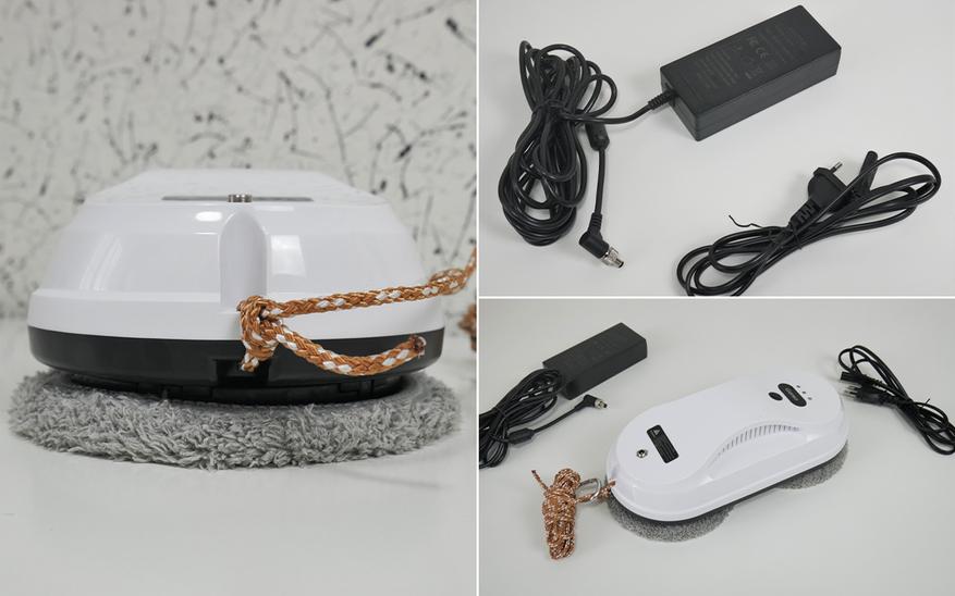 Перед тем, как запустить робота, нужно соединить адаптер и шнур питания, и дождаться, пока подзарядится резервный АКБ. Страховочный шнур нужно закрепить на батарее, а на мопы пшикнуть моющего средства. Затем достаточно прижать мойщика к стеклу и нажать кнопку запуска.