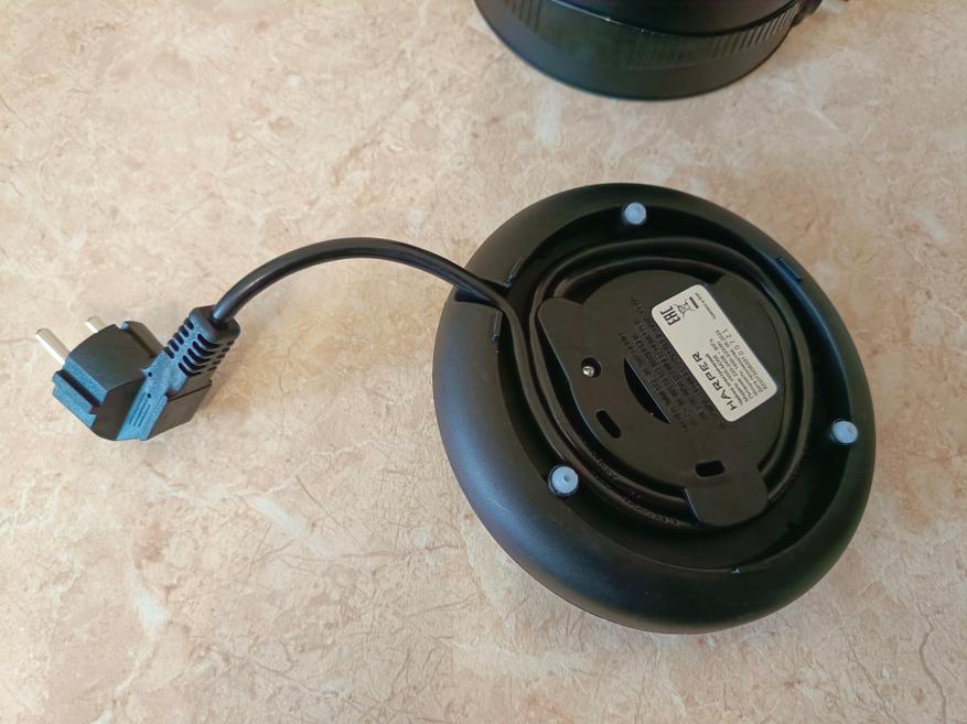 Подставка выполнена из чёрного матового пластика. Она позволяет устанавливать чайник на 360 градусов. Хотя этим сейчас уже никого не удивишь. Приятным дополнением является система намотки сетевого шнура. Поэтому излишки провода можно спрятать.