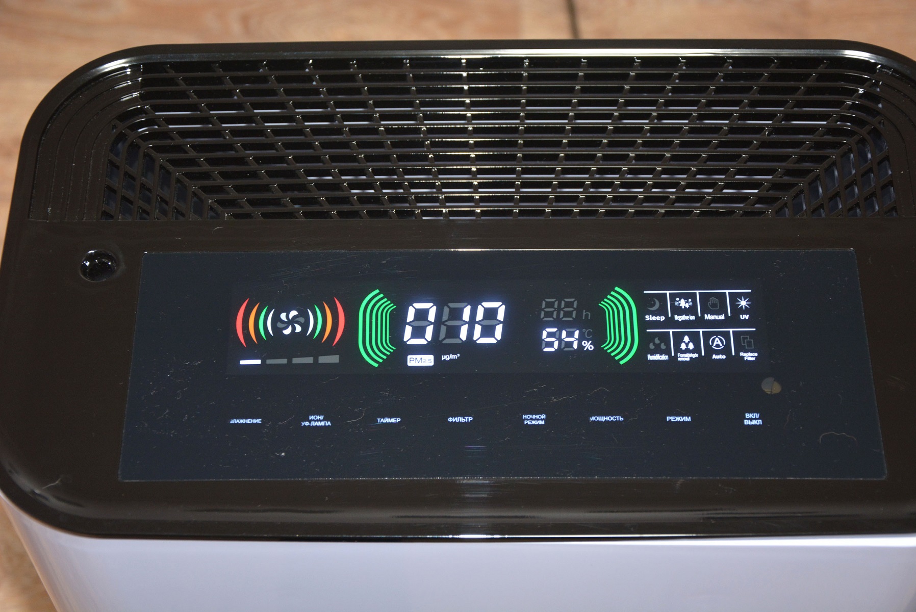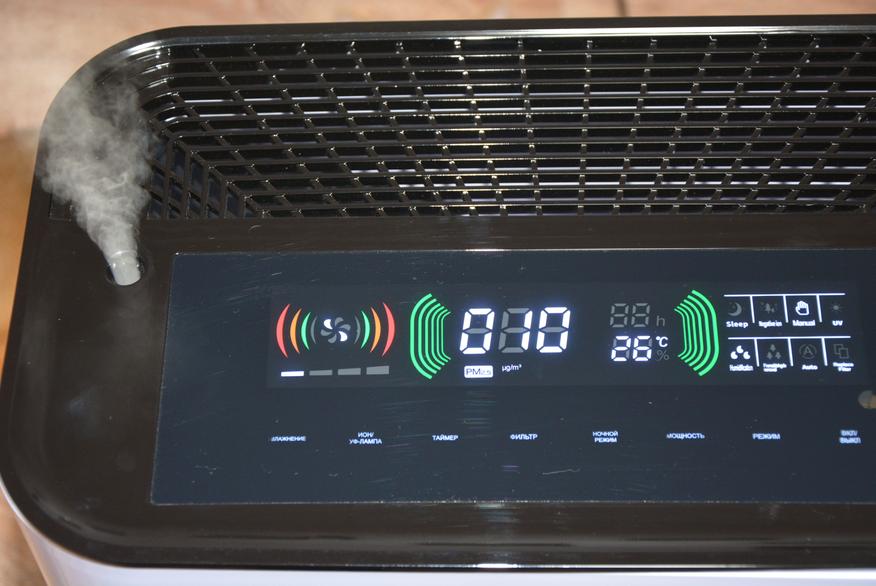 Ионизация воздуха и ультрафиолетовая лампа (длина волны 254 нм) включаются последовательным нажатием кнопки Ион/Уф-лампа. Оба режима могут работать по-отдельности, могут совместно. Оценить их работу без объемных статистических данных и глубокого анализа сложно, но такие функции в устройстве есть и надеюсь, что в условиях окружающих ОРВИ эти функции мне помогут.