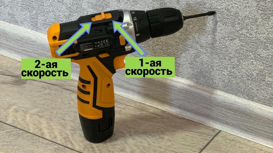 По умолчанию скорость вращения регулируется глубиной нажатия курка — чем сильнее нажатие, тем больше оборотов. Однако длины хода может быть недостаточно, чтобы точно регулировать обороты и для откручивания/закручивания, и для сверления. Для первой задачи вполне хватает 400 об/мин, а для второй нужно минимум 800 об/мин. Проблему решает механический ползунок, который позволяет разделить обороты на 2 скорости — 1-ая для закручивания, а 2-ая для сверления. Наличие такого переключателя обязательно, если вам нужен универсальный инструмент под разные задачи.