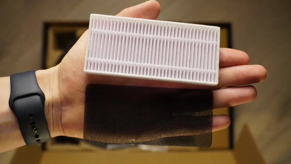 В пылевом контейнере обязательно наличие входной шторки, чтобы мусор не вываливался обратно. Обращайте внимание на наличие 2 уровней фильтрации — фильтр грубой очистки и HEPA-фильтр от 11-класса на выходе. Фильтр грубой очистки (сеточка) сохраняет запас ресурса двигателя, однако имеется не у всех роботов-пылесосов, поэтому будьте внимательны.