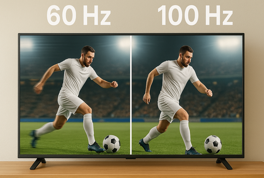 В недорогих телевизорах обычно 60-100 Гц. Это число показывает, сколько кадров ТВ показывает за секунду. Чем выше частота — тем плавнее движение на экране. Для новостей и фильмов 60 Гц хватает, но если смотрите спорт или динамичные сцены — ищите модель с 100 Гц. Картинка будет заметно мягче.