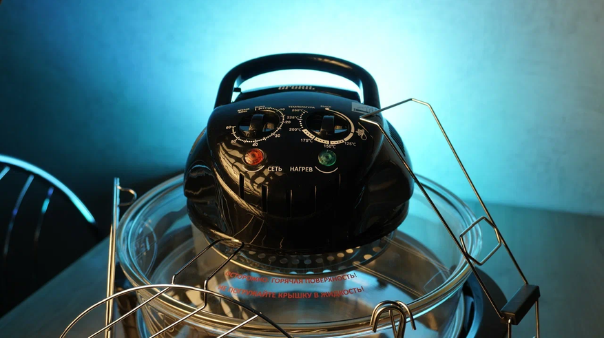 Если оценивать нынешний ассортимент аэрогрилей, то очевидно, что в долгосрочной борьбе победил обычный металлический нагреватель. Галогеновые приборы я могу порекомендовать только тем, кто целенаправленно выбирает бюджетные модели со съёмной крышкой и готов при этом менять нагреватель раз в 2-3 года — благо сейчас этот расходник можно найти на любом маркетплейсе.