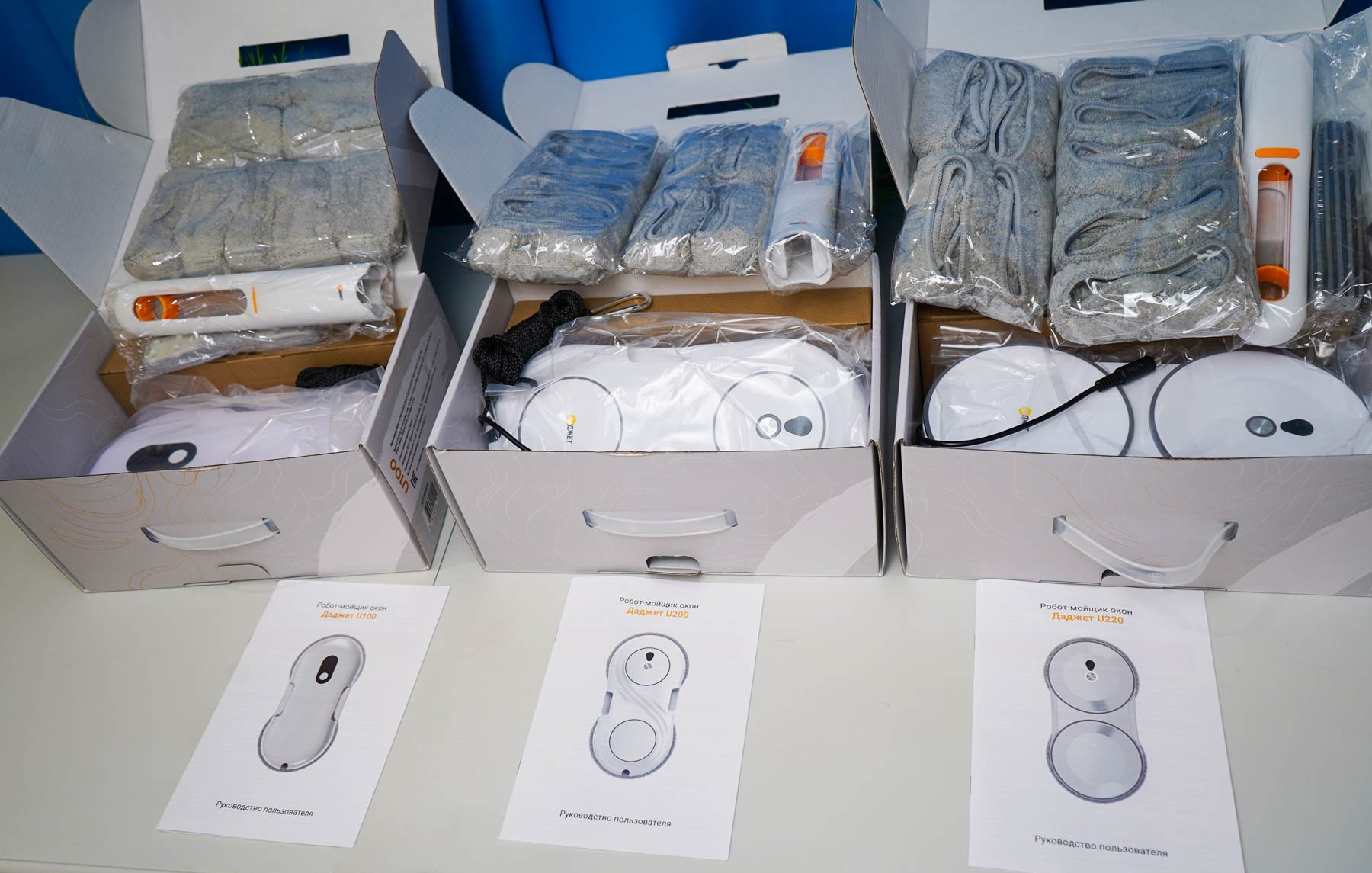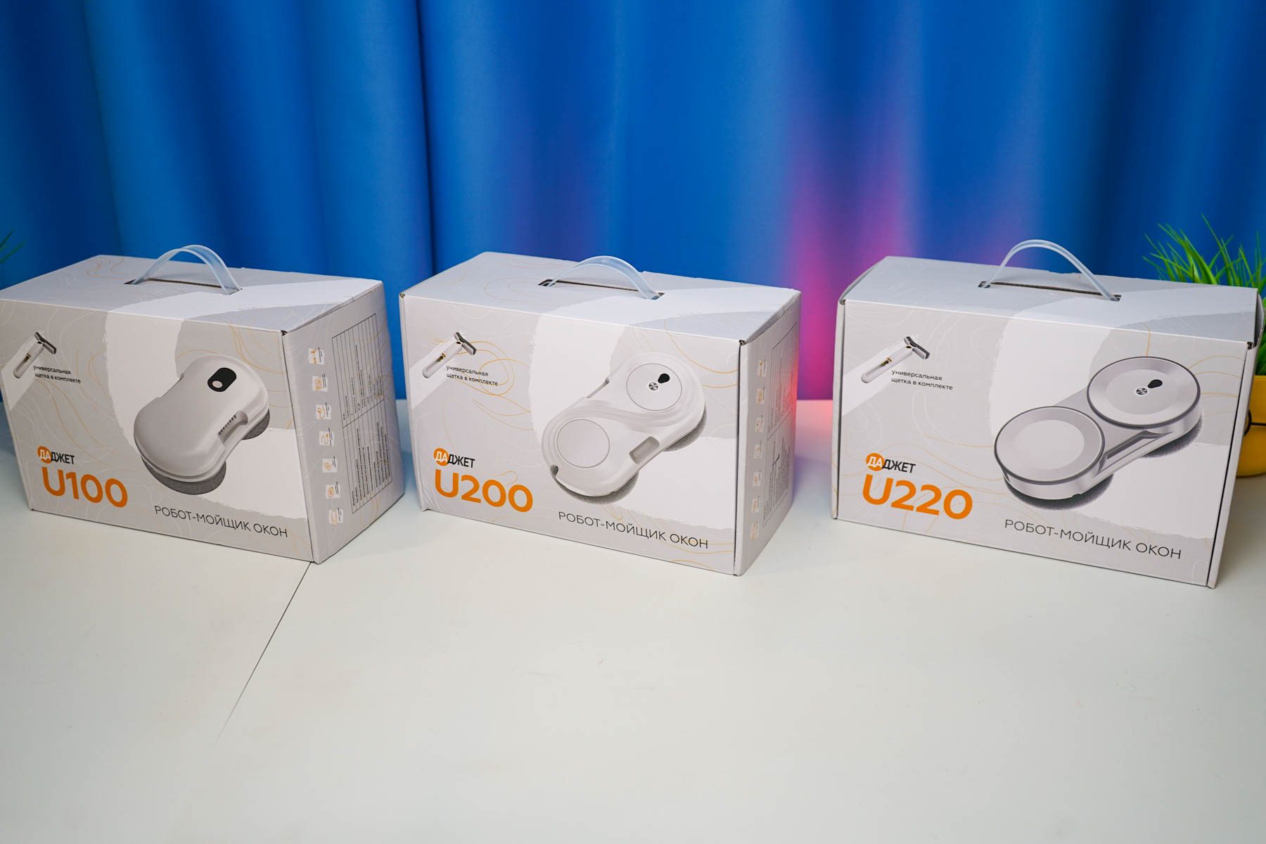 Итак, небольшое тестирование сразу трех роботов-мойщиков окон из U-линейки бренда Даджет. Отличаются роботы внешним видом, размерами и набором функций. Что же касается комплектации, то в коробках у каждого робота вы найдете: