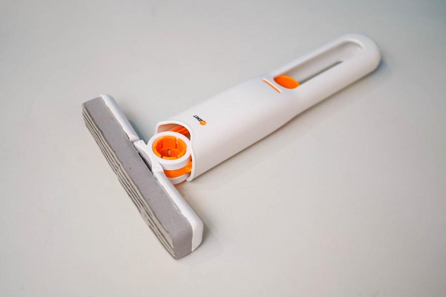 Отдельно выделю, что с каждым роботом производитель предоставляет в комплекте компактную и универсальную складную щеточку. Она подойдет и для помощи роботам, и для бытового применения в целом. В сложенном виде щеточка весьма компактная, в разложенном виде позволяет дотянуться до уголков окна. Отмечу, что мягкая моющая насадка-губка сделана съемной.