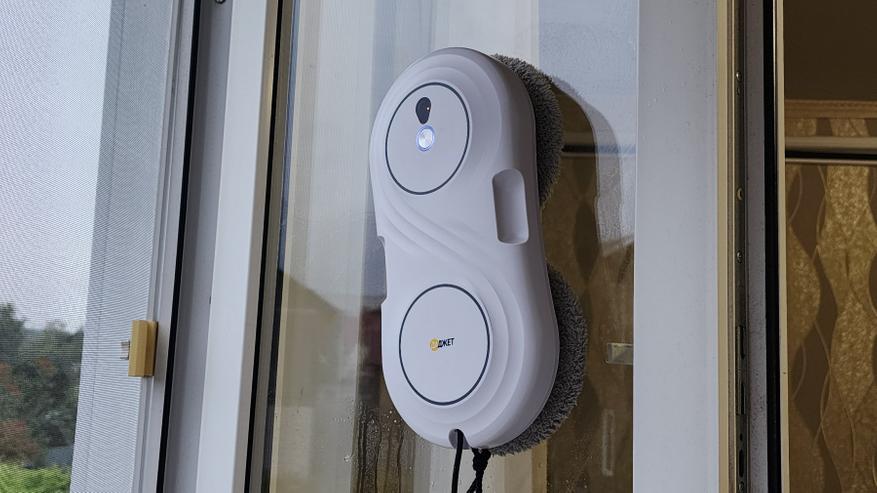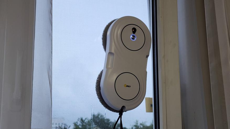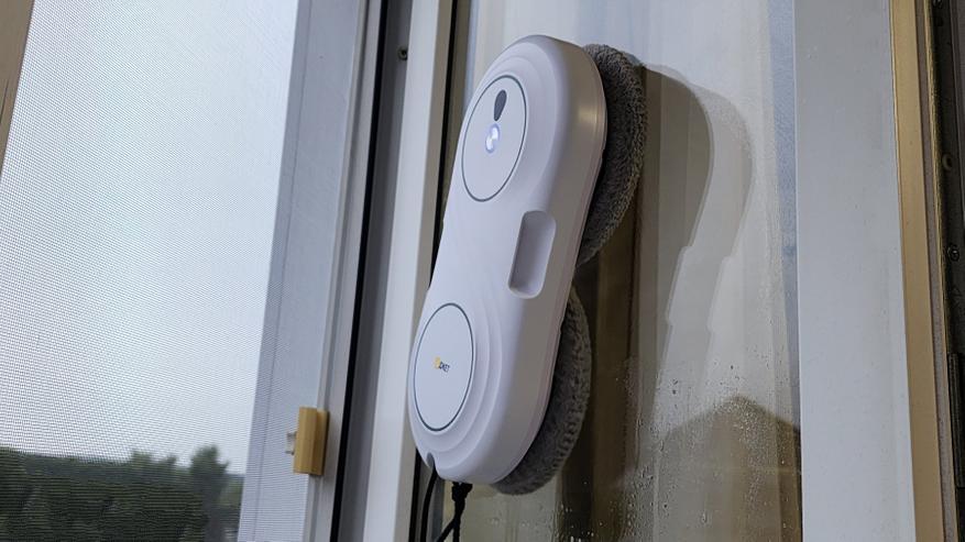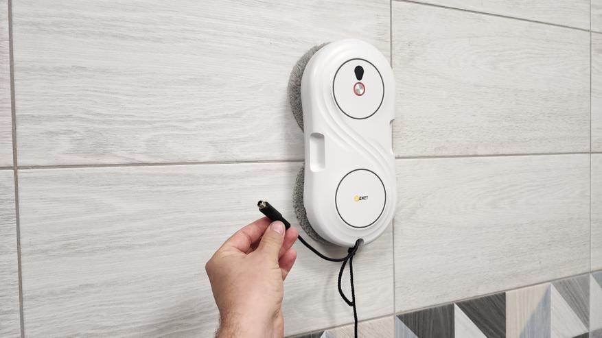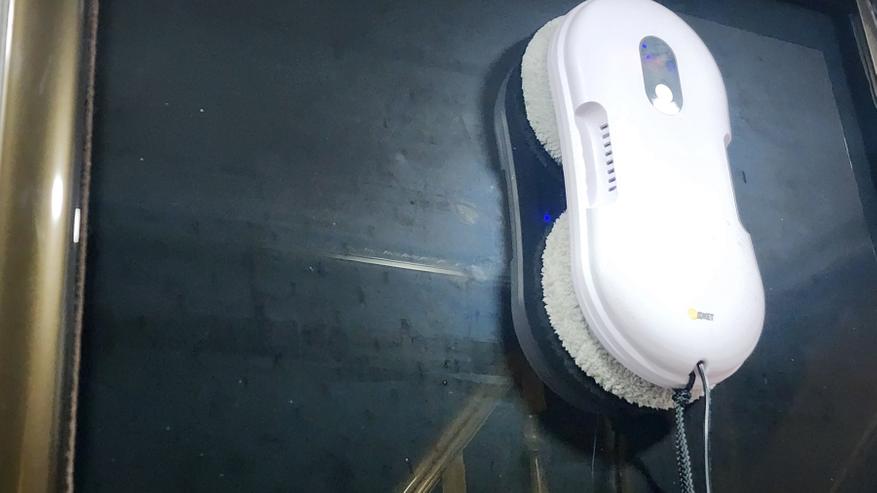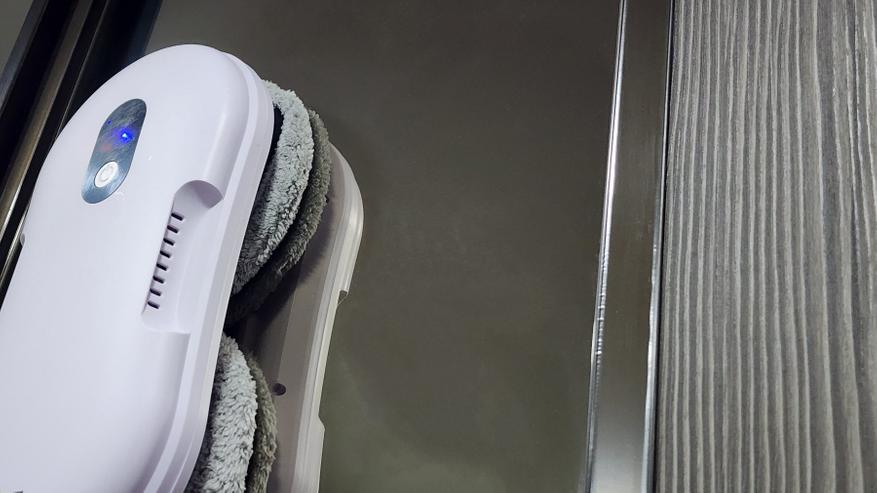 Провел тест — отключил питание от самого робота. Заявлено, что встроенный аккумулятор позволяет удерживать корпус робота в таком экстренном режиме до 20 минут. Без питания раздается сигнал (писк), а также периодически загорается красным основной индикатор робота. Сбои могут случаться, например, при отключении сетевого питания, при разрыве кабеля и прочих сбоях. Эта функция страхует робота от падения вниз. Стоит сказать, что робот остается зафиксированным на поверхности в этот период — мне достаточно 1-2 минут, чтобы безопасно снять робота с поверхности.