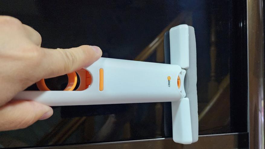 Если говорить про модели U200 и U220, то стоит выделить их преимущество над большинством простых мойщиков — это наличие специального разбрызгивателя, который позволяет разбрызгивать порции моющего средства прямо на поверхность при уборке. Такая система распыления жидкости называется JetStream и реализована за счет ультразвуковой форсунки. Для модели U200 используется одна форсунка, для модели U220 — уже две симметрично расположенные форсунки. В коробке имеется небольшой флакон-бутылочка, который применяется с целью наполнения ёмкости в мойщиках. В том числе данный флакон применяется в качестве распылителя — добавлять средство непосредственно на салфетки/стекло — весьма удобно.