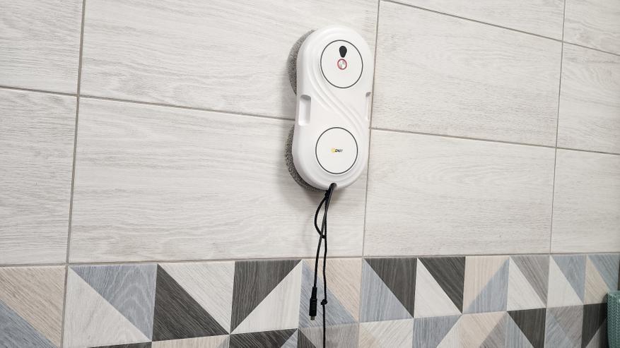 Начну тестирование с протирки плитки в ванной комнате. Хоть в ванной и относительно чисто, а также минимум пыли, плитка периодически требует ухода. И тут сильно выручают такие роботы, так как, во-первых, на высоте у потолка мне неудобно протирать, а во-вторых, площадь уборки приличная, пусть лучше робот сам елозит туда-сюда.