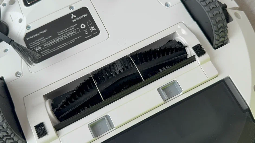 Рабочий блок с турбощёткой здесь слегка выпирает, прижимаясь к полу и обеспечивая лучшую силу всасывания