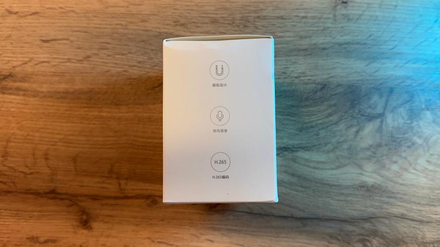 Поставляется IP-камера в квадратной коробке белого цвета. Всё расписано на китайском языке, но, к счастью, есть иллюстрации. Чтобы не «разводить» много текста, оставлю фотографии со всех сторон коробки.