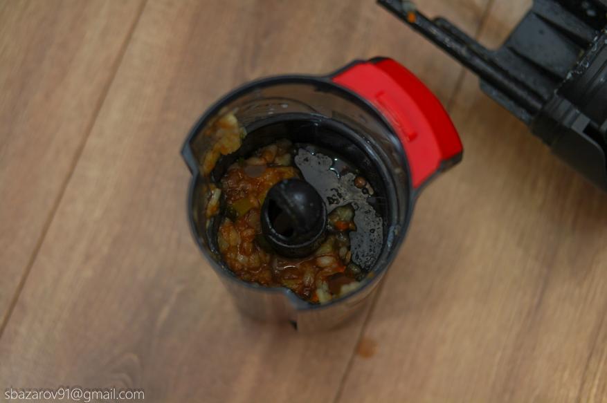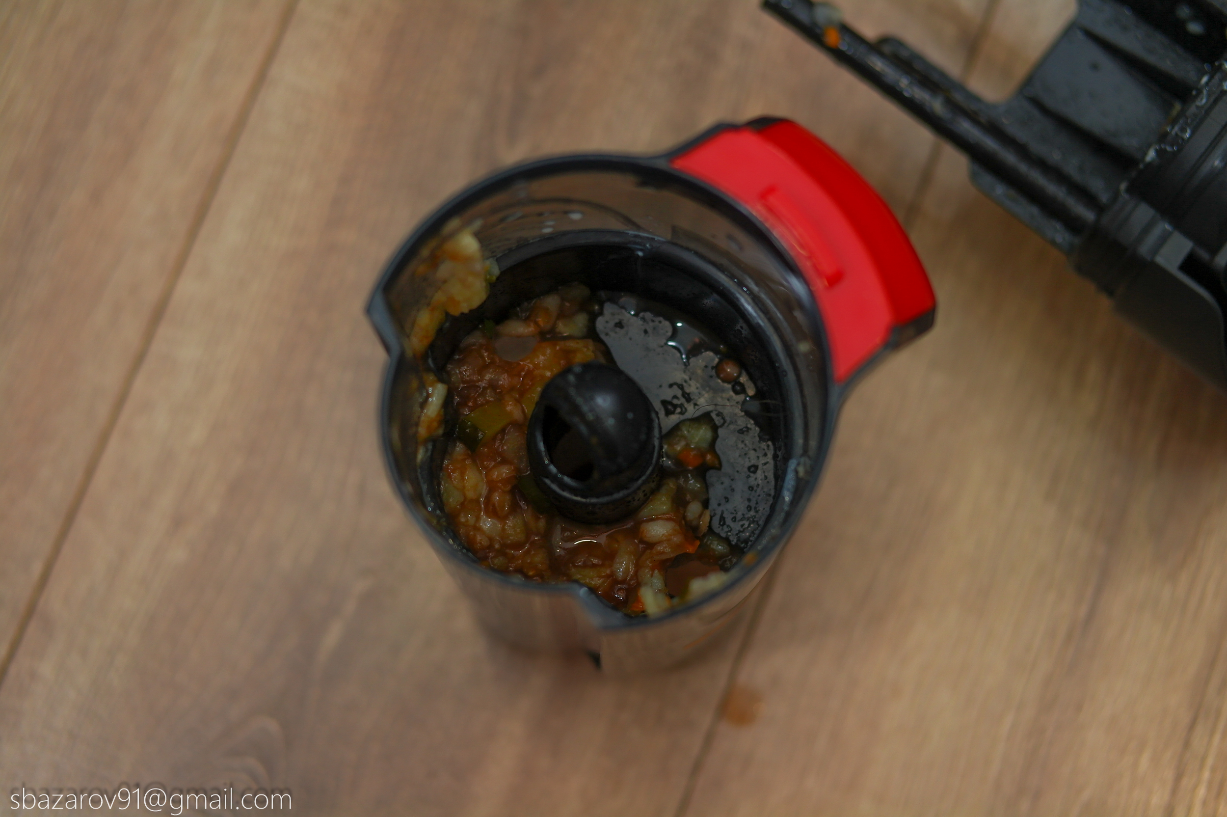 Теперь, когда все тесты завершены можно посмотреть на работу сепаратора, который отделяет крупные частицы от жидкости. Крупные частицы супа остались на сеточке, тогда как вся жидкость собралась в колбе и перемешалась в единое целое.