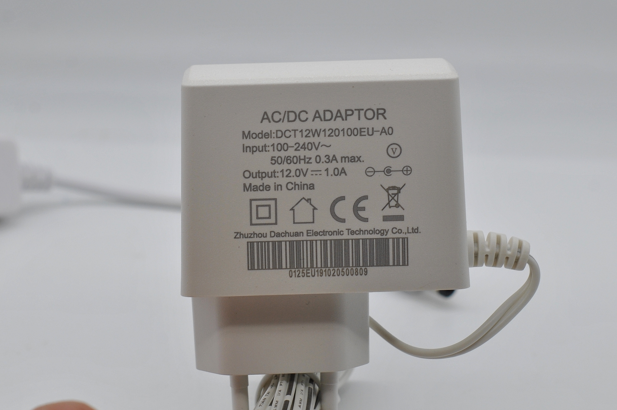 Рассмотрим чуть подробнее. Импульсный блок питания под «евро» розетку белого цвета. Выдает 12 В 1 А. Оканчивается типовым разъемом 5,5х2,1 мм, кабеля 1,5 метра.