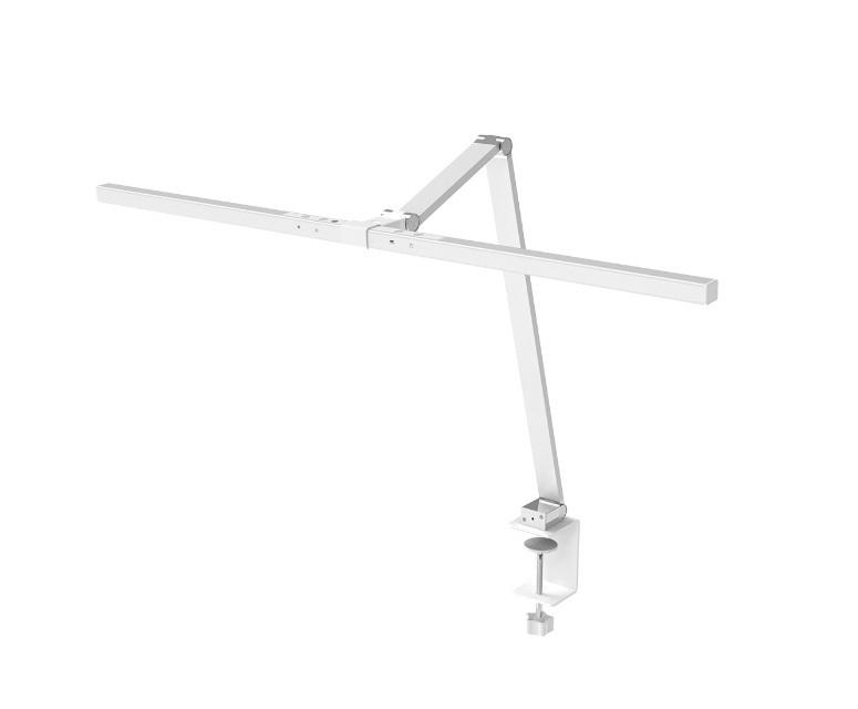 Лампа PHX005 2 IN 1 относится к категории офисных. «Два в одном» это про способы крепления на столе: у нее есть зажим и увесистая металлическая подставка. Сама лампа почти полностью изготовлена из металла, что способствует долговечности, и хорошему теплоотводу в зоне светильника. Лампа большая — высота гибкой ножки 53 см, а длина светильника 80 см. Благодаря таким размерам, освещается большая площадь рабочего стола.