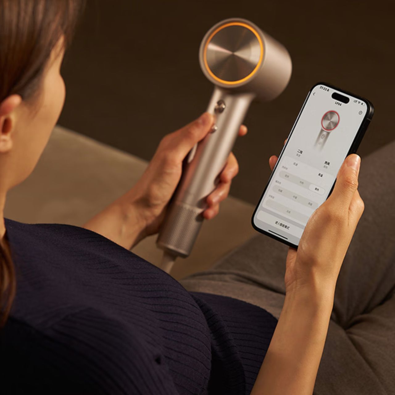 Фен получил специальное сопло для увлажнения волос, работающее в режиме реального времени. Как указано в описании, комплект включает сменные капсулы с эфирными маслами для разных типов волос. Интеллектуальный контроль температуры, проверяющий нагрев 1000 раз в секунду, дополняется приложением для смартфона, где можно выбрать режимы: детский, уход или циклический обдув горячим и холодным воздухом.