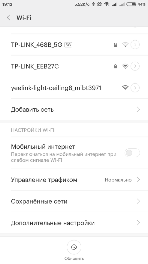 После того как светильник подключится к mihome, приложение проверит и при необходимости предложит установить обновление для прошивки, и в списке устройств появится новый светильник, который называется LED Ceiling Light Crystal Plus