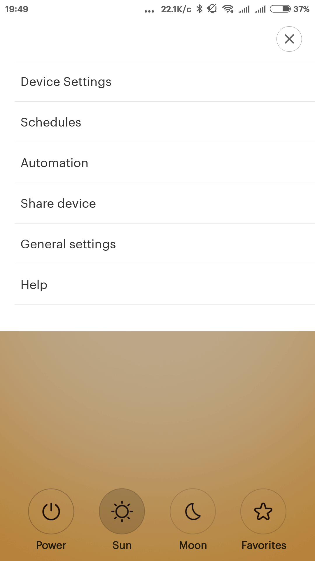 В меню основных настроек — можно изменить имя устройства, задать местоположение, удалить устройство или вывести ярлык плагина на рабочий стол. В текущей версии прошивки нет опции Bluetooth шлюз, думаю что она появится позже, как это уже было с другими светильниками.