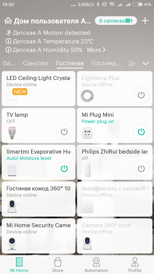 А для нее есть отдельный сценарий, триггером которого служит переход светильника из состояния выключено к включенному. Поэтому и неважен способ включения светильника, он работает даже если вы будете включать его в MiHome — например логическим условием проводного выключателя, которое нельзя отследить в альтернативных системах.